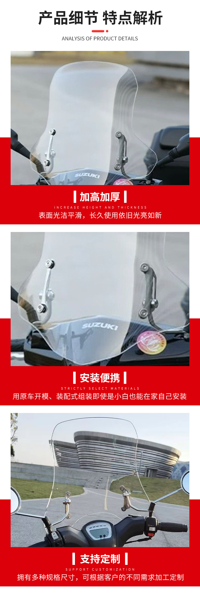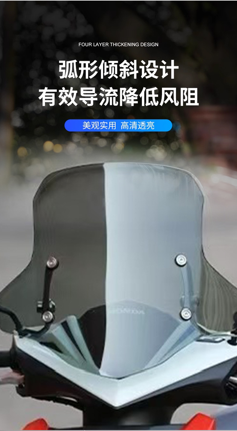 Модификация ветрового стекла для мотоцикла, увеличение высоты, прозрачный, расширенный и утолщенный дождевик, ветровое стекло для электрических транспортных средств