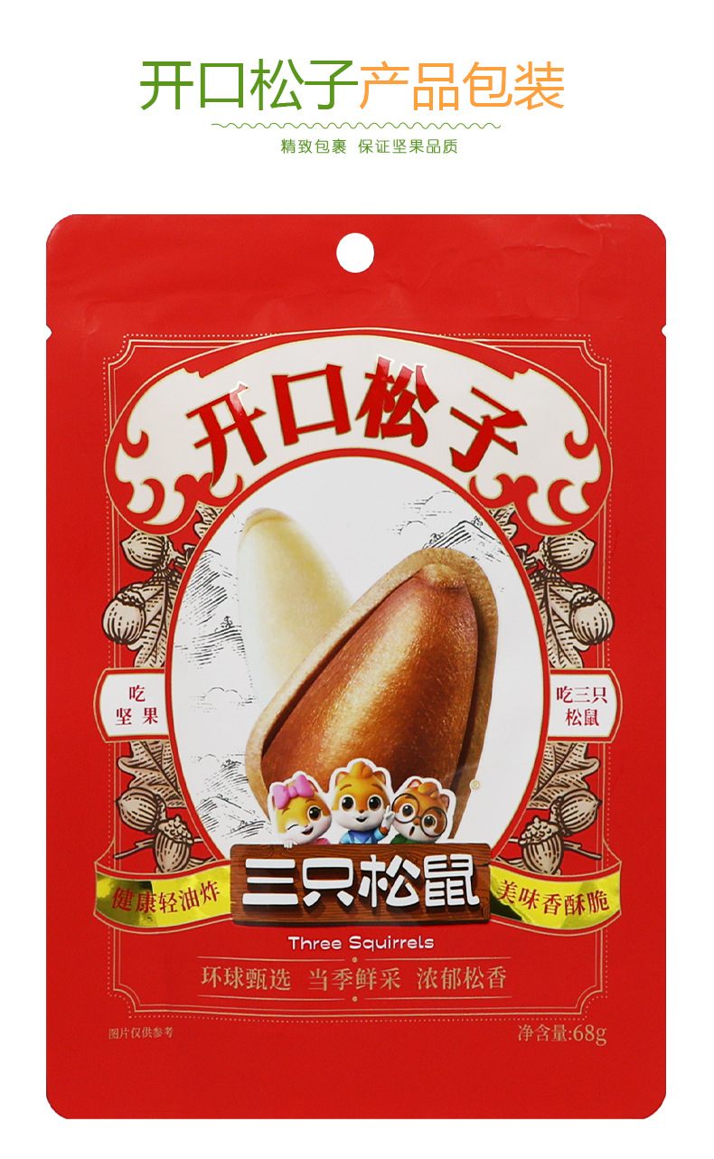 ![]() | Three squirrels pine nuts 68gx3 bags | ¥31.5 / ≈ 380 ₽ | 10000 | 5820606299199 | |