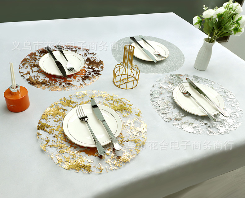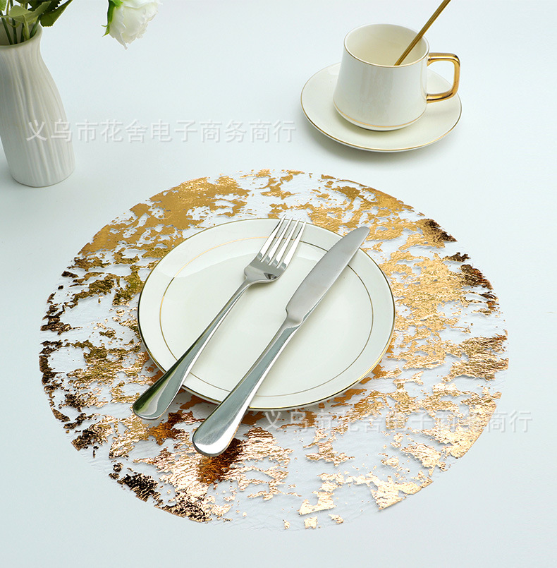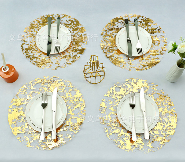 Одноразовые сетчатые подставки из золотой фольги, круглые фольгированные столовые подложки, оптовая легкая роскошь