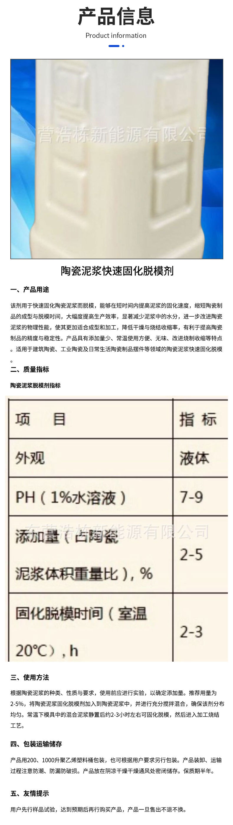 Название продукта Ceramic slurry rapid curing release agent shortens sintering time, improves shrinkage performance and speeds up production turnover