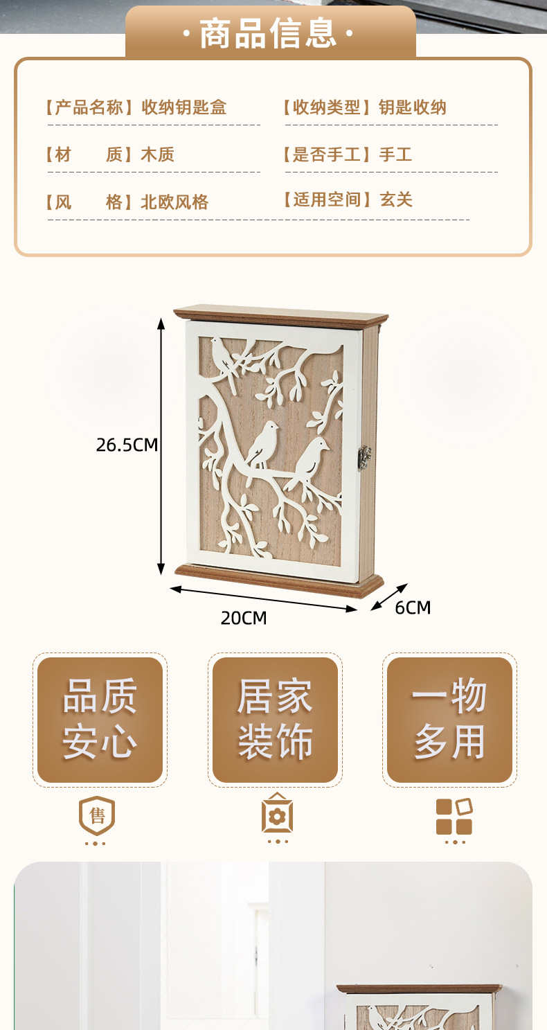 Белая деревянная коробка для хранения ключей, милый декоративный аксессуар для дома, настенный держатель для автомобильных ключей