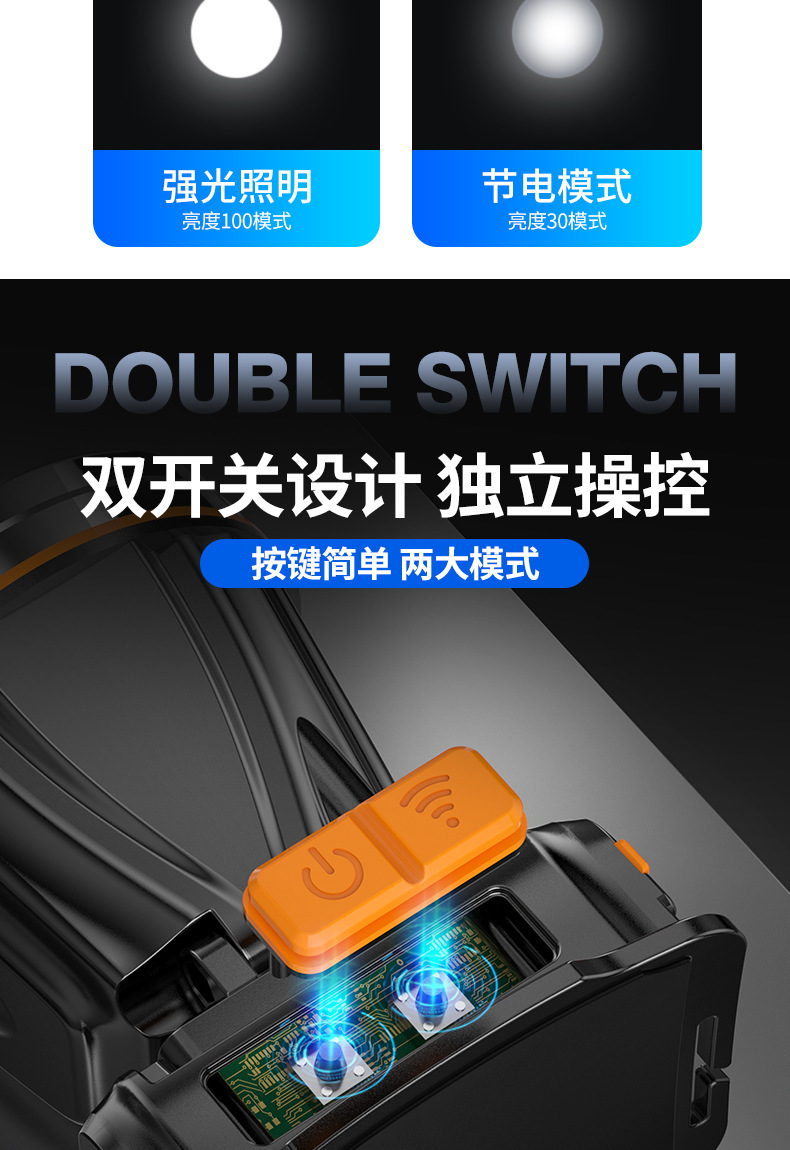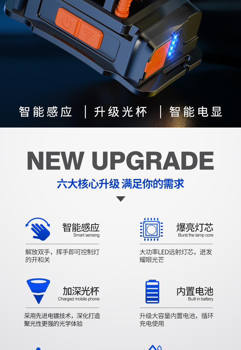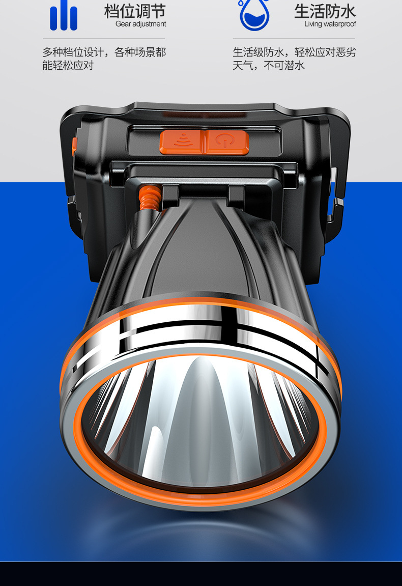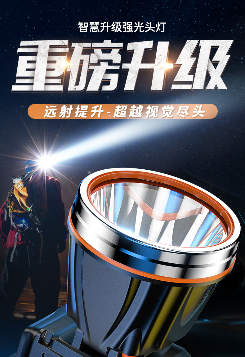 Кросс-Бордер Сильный Свет Налобный Фонарь, Дальнего Действия, Перезаряжаемый, Водонепроницаемый, Ультра-Яркая Налобная Лампа для Ночной Рыбалки, Лампа Шахтера, Ультра-Долгая Жизнь Батареи Налобный Фонарь