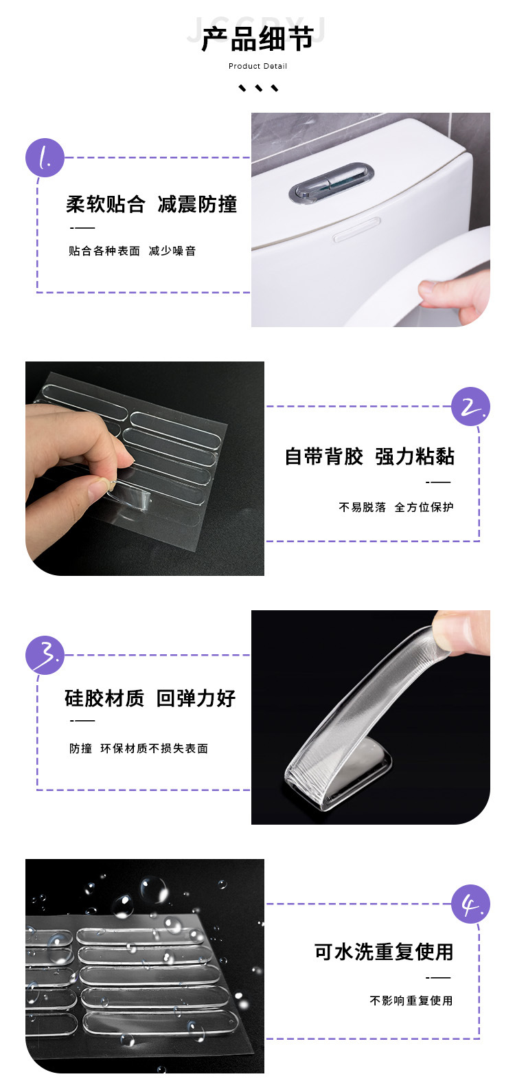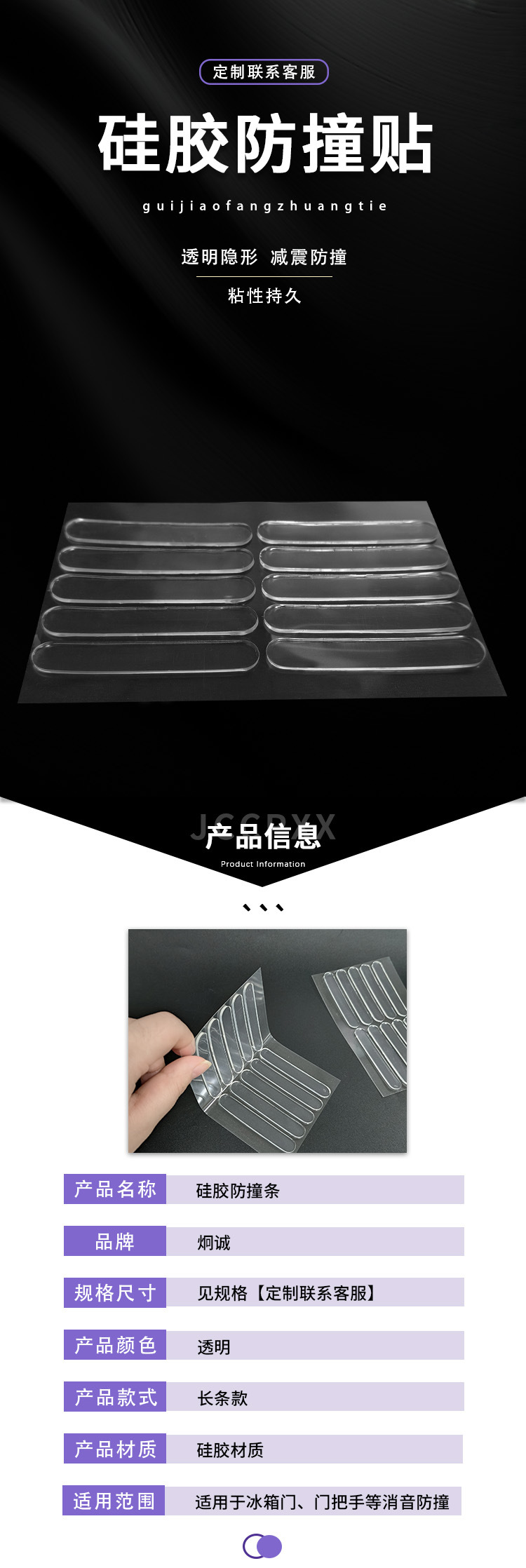 自粘硅胶防撞贴无痕冰箱门硅胶防撞条桌子门把手免打孔透明防撞条