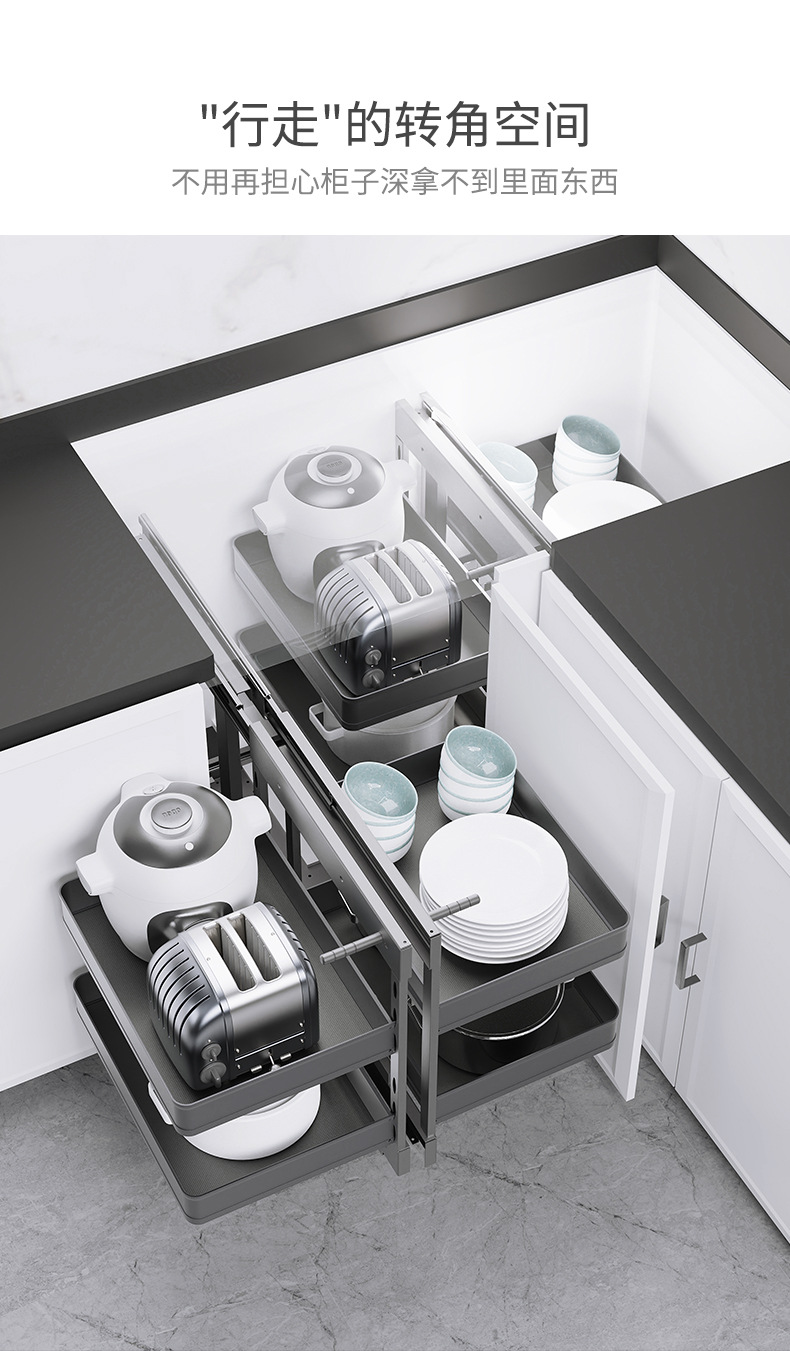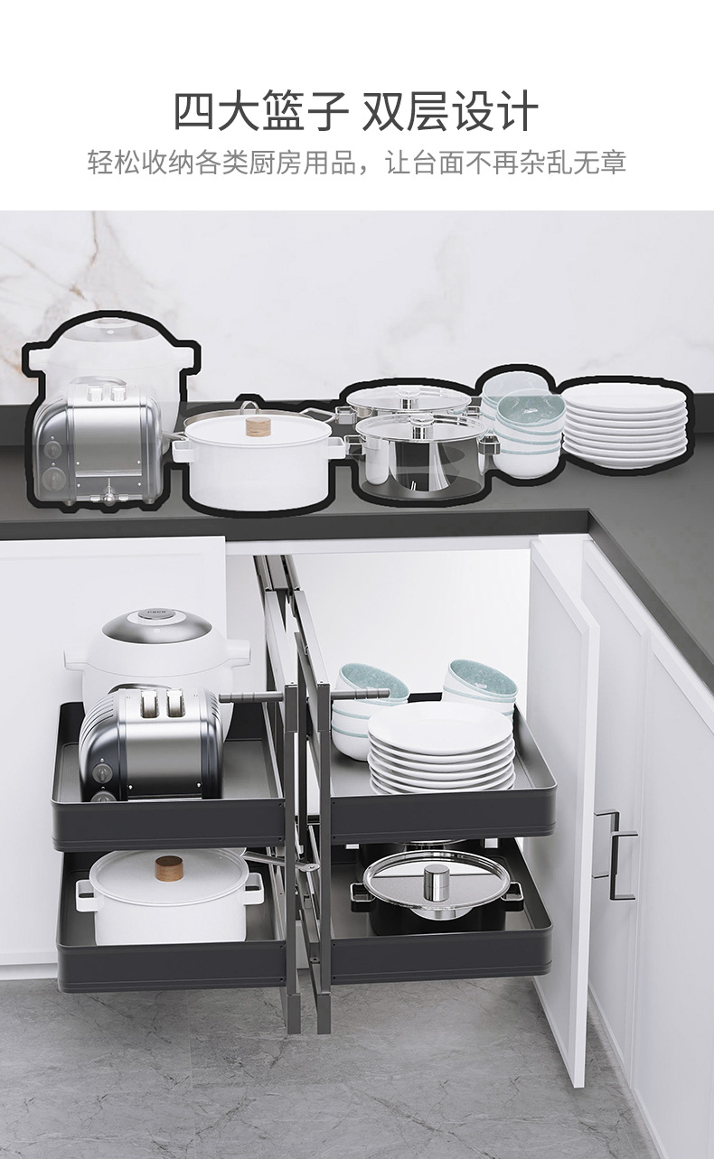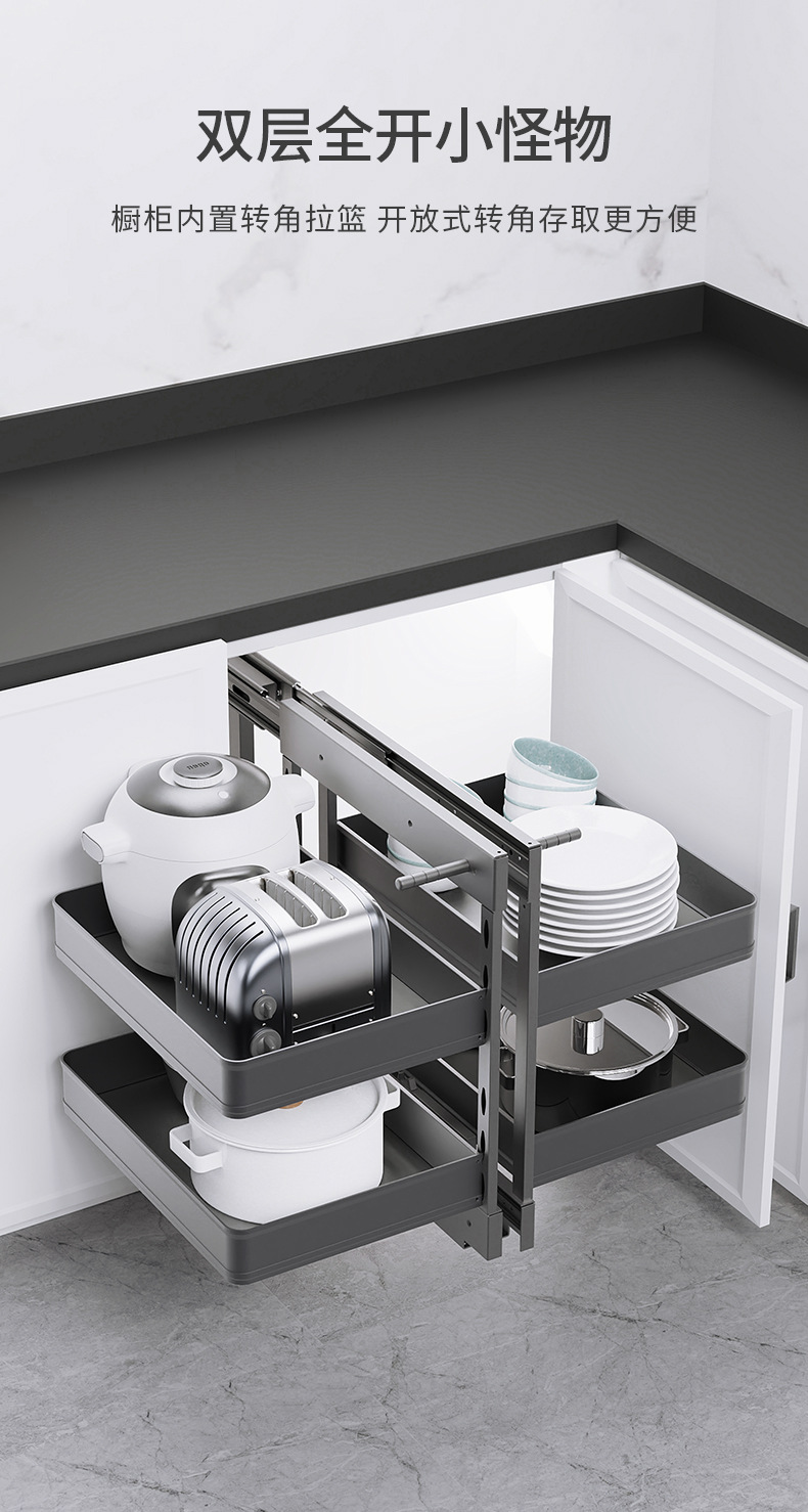 Угловая выдвижная корзина для кухонного шкафа, двойной ящик с полным выдвижением, опорная корзина