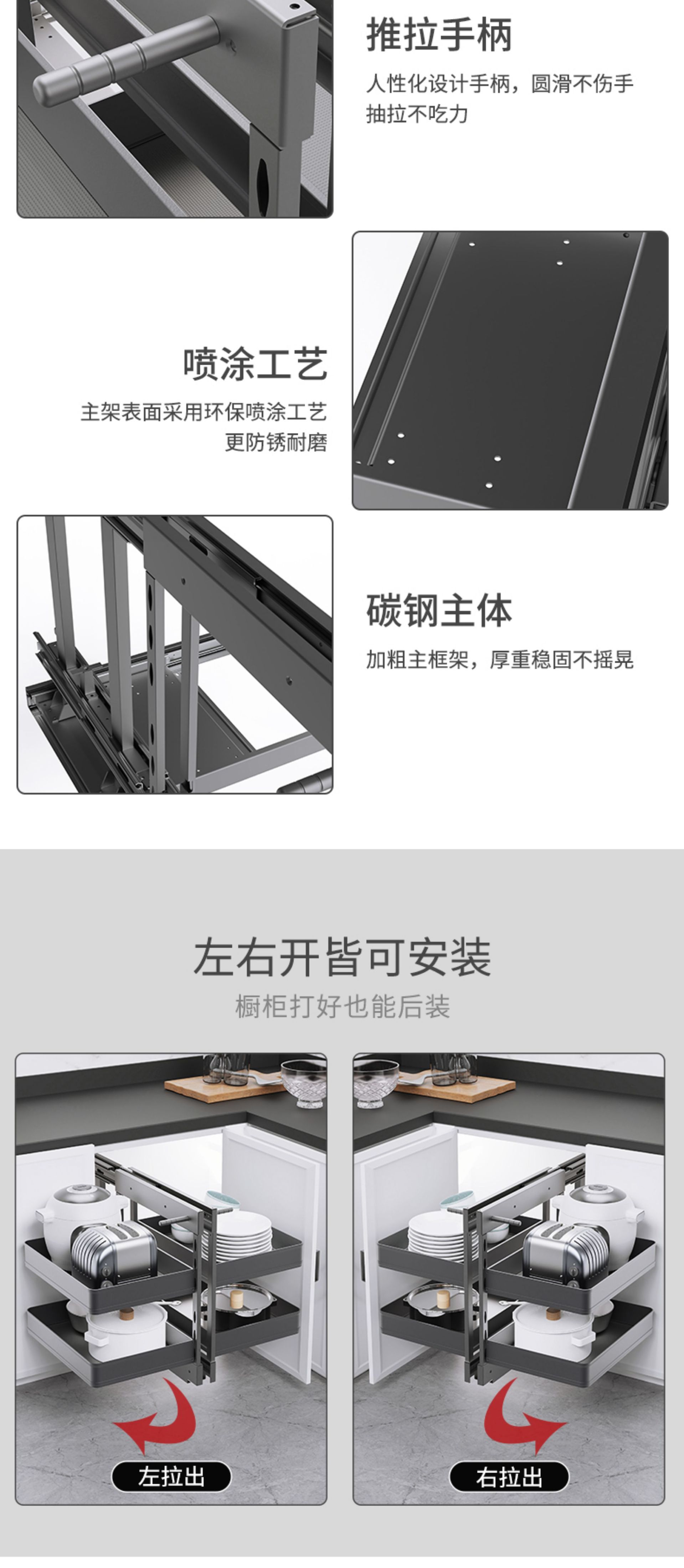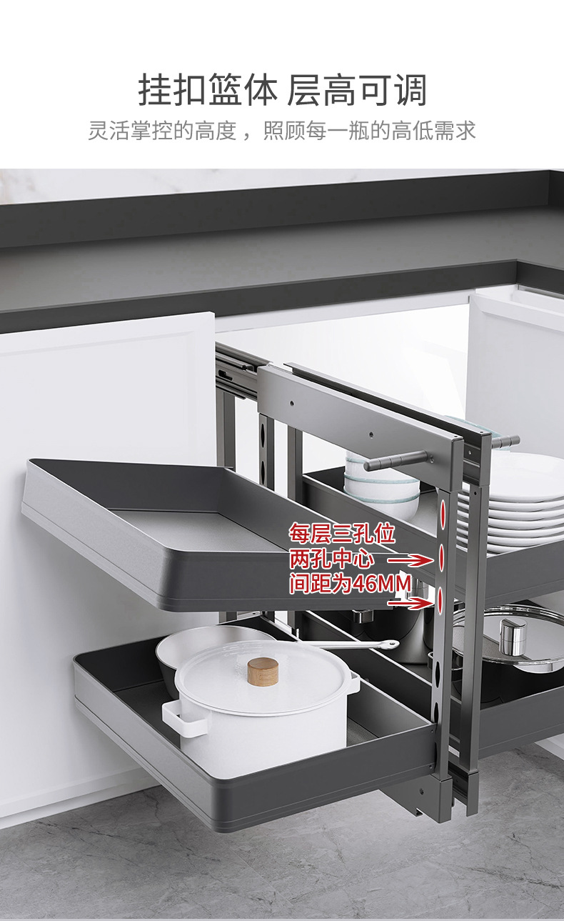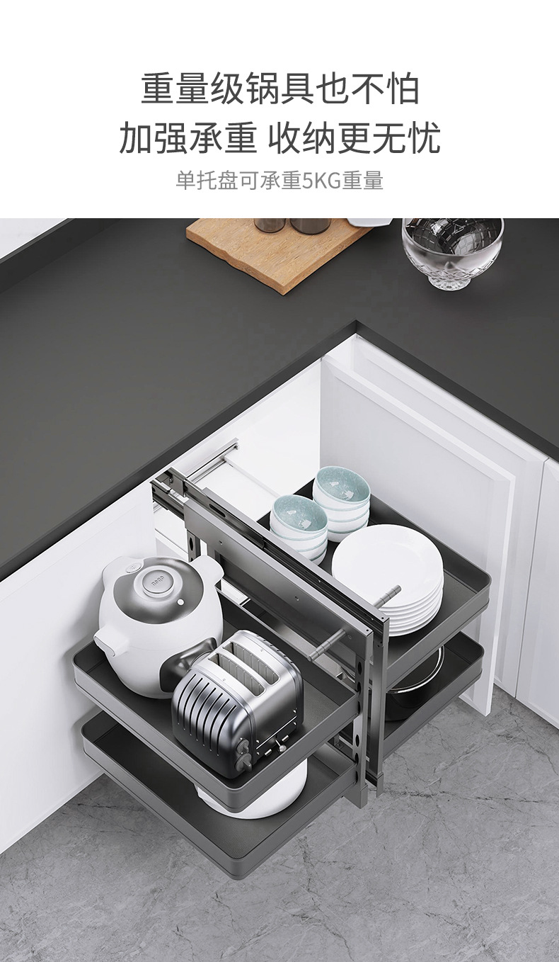 Угловая выдвижная корзина для кухонного шкафа, двойной ящик с полным выдвижением, опорная корзина