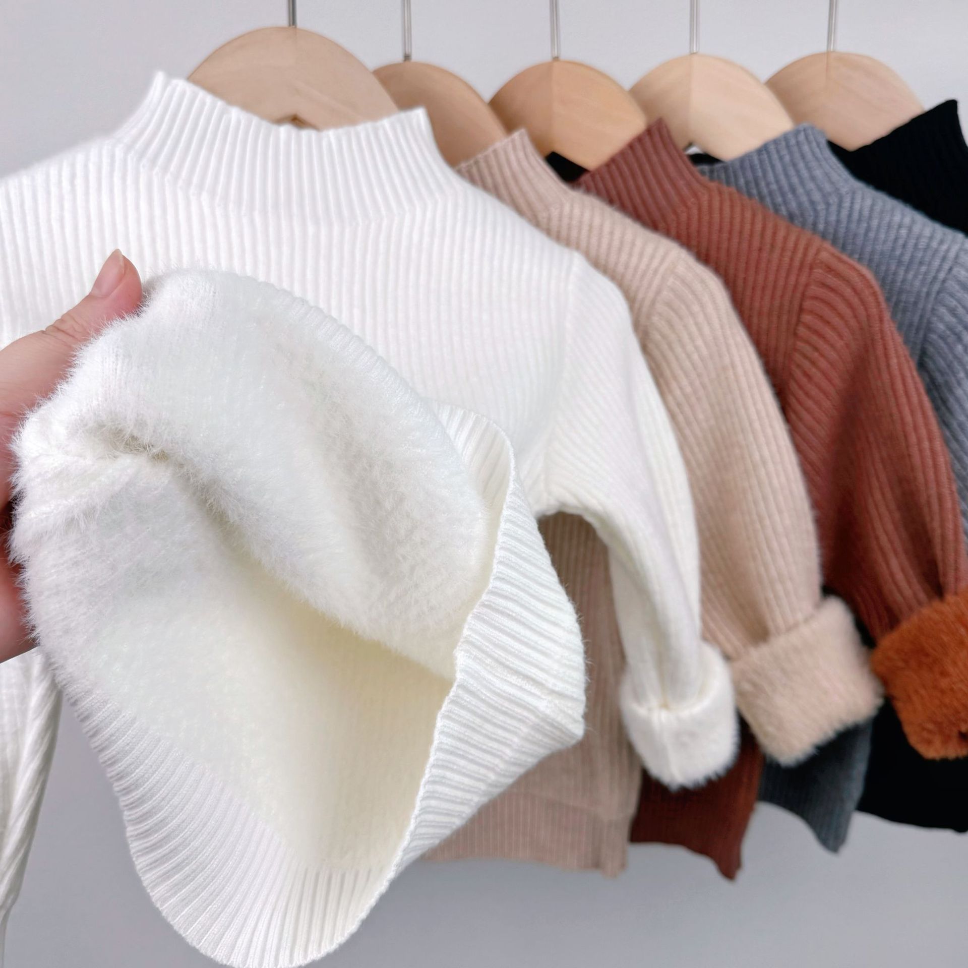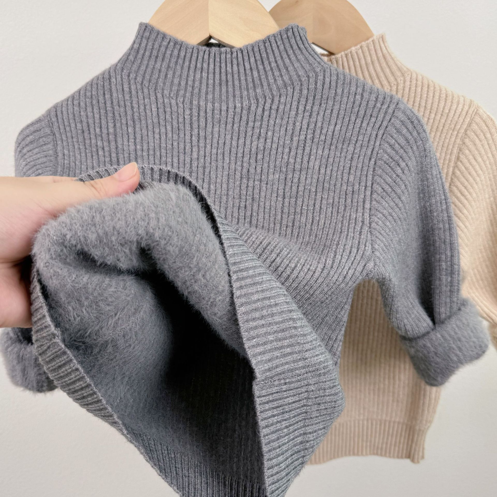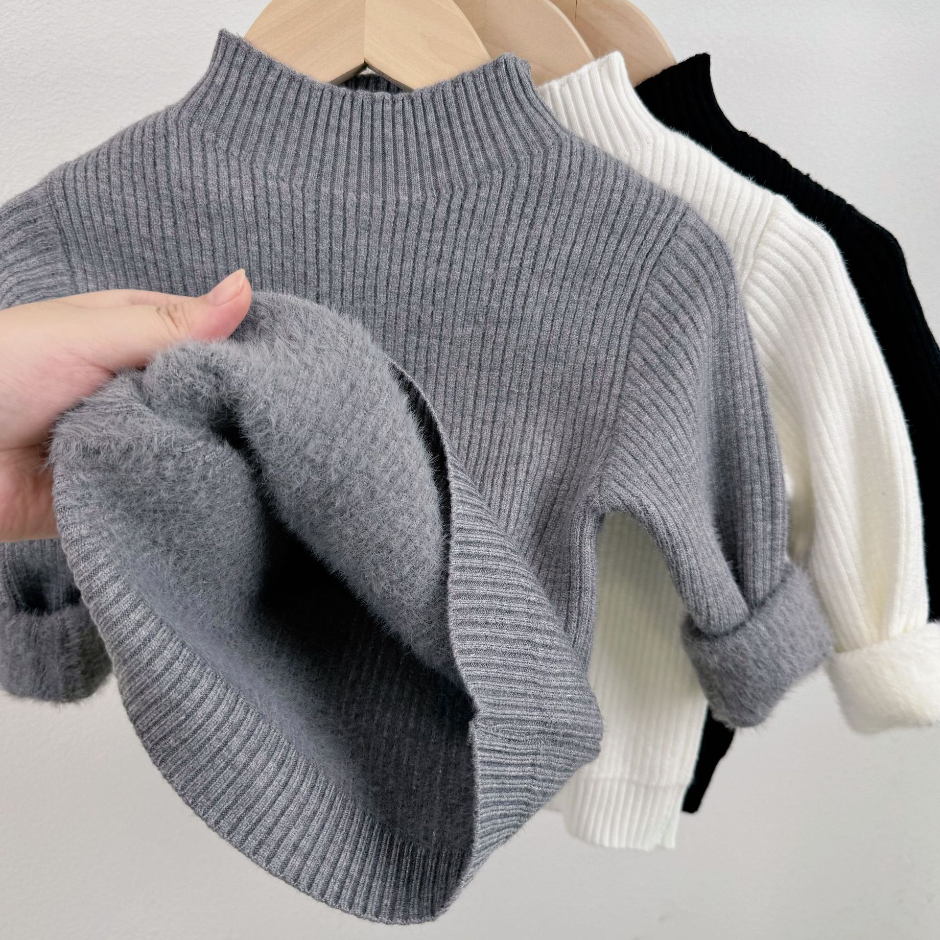 Свитер для малышей и детей с флисовой подкладкой, утолщенный, вязаный свитер из велюра для детей и младенцев, новый зимний стиль