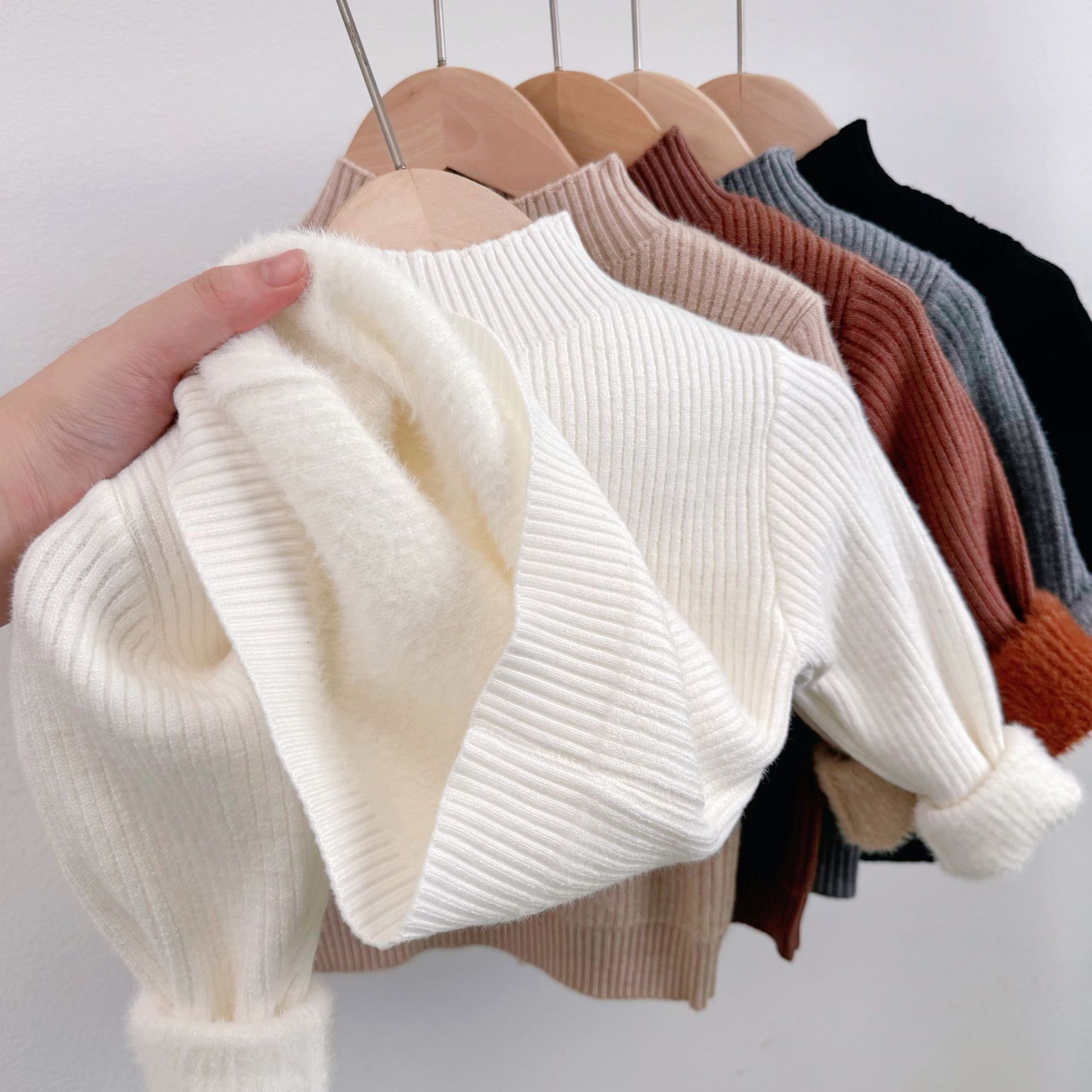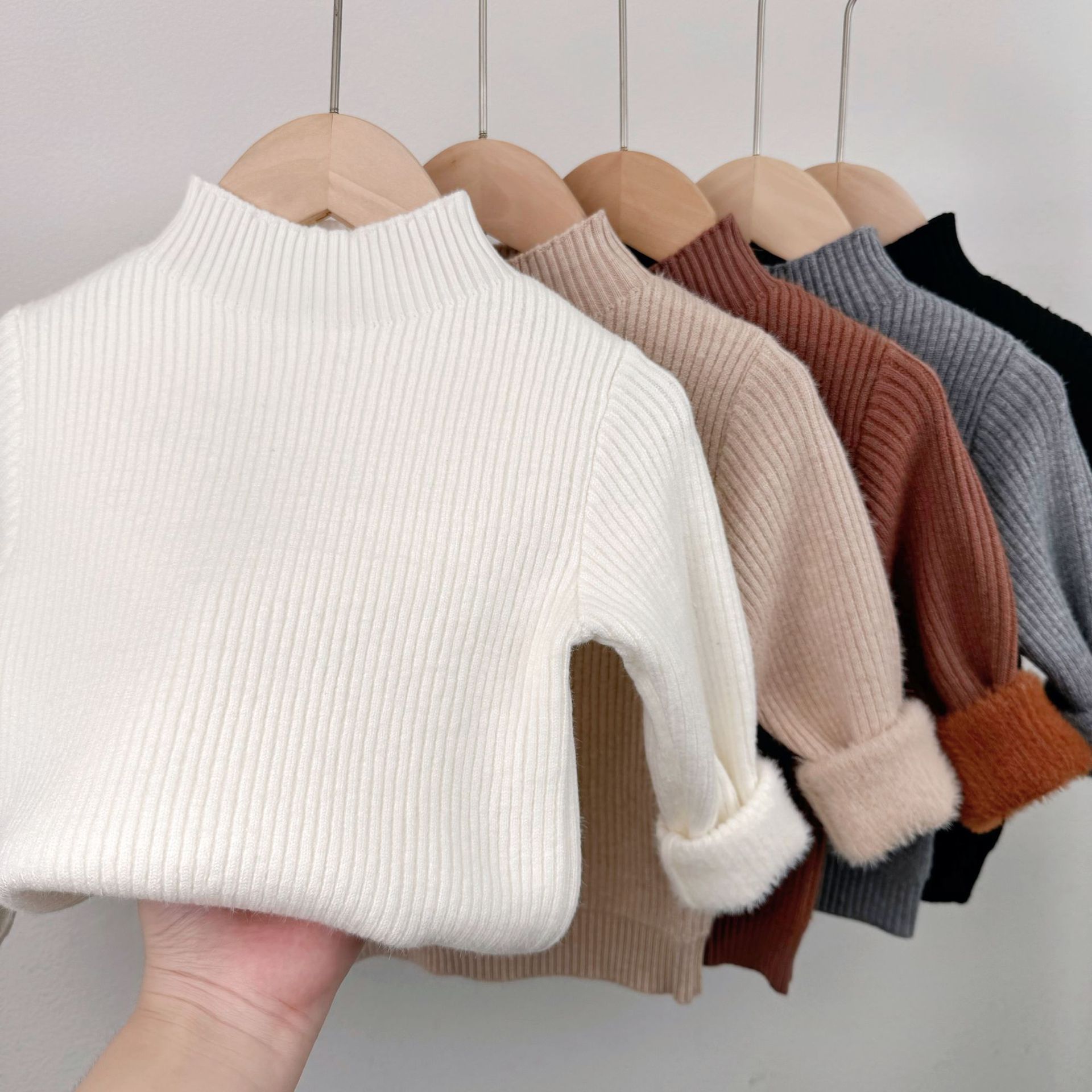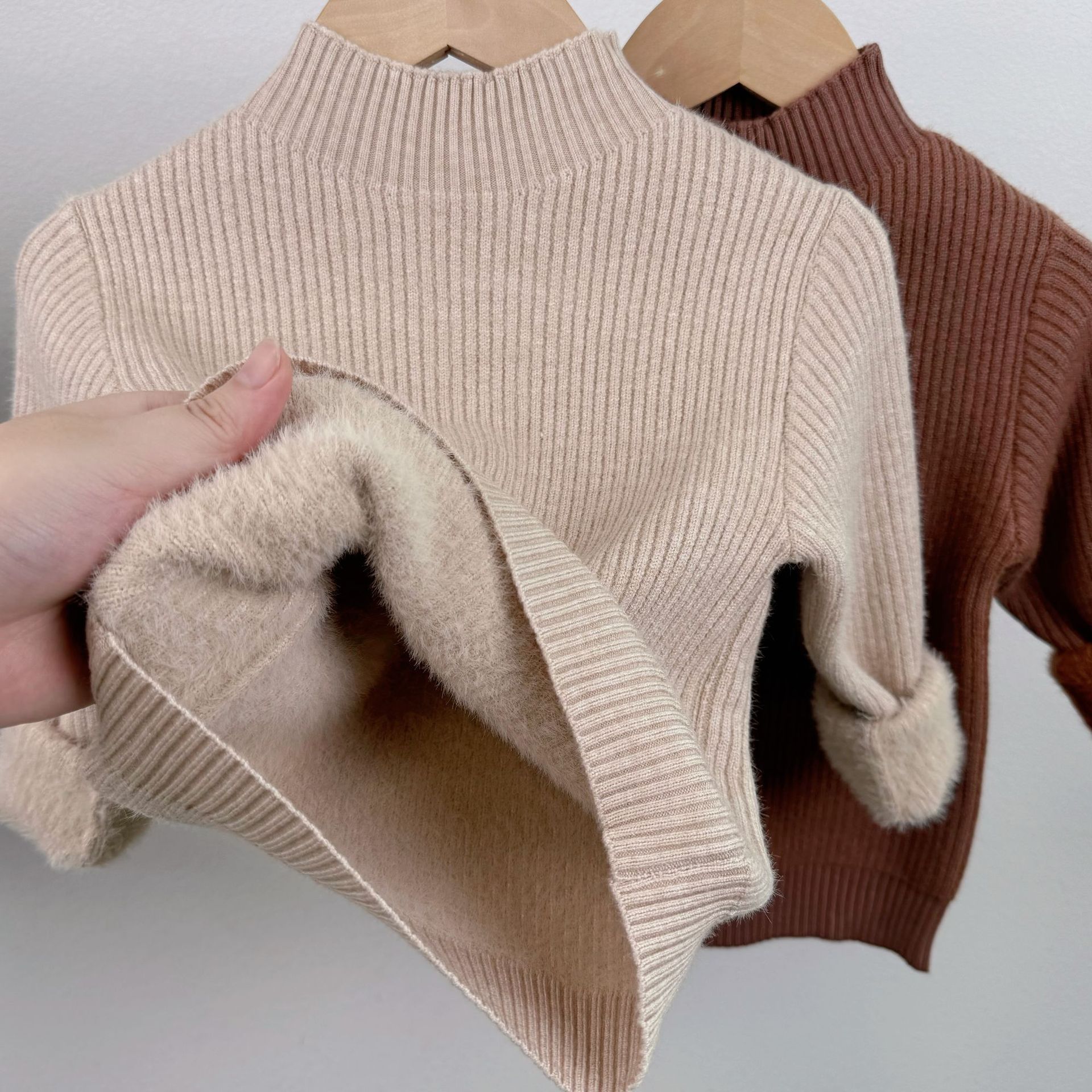 Свитер для малышей и детей с флисовой подкладкой, утолщенный, вязаный свитер из велюра для детей и младенцев, новый зимний стиль