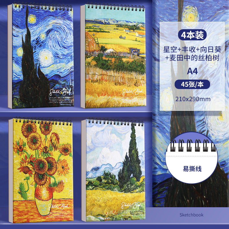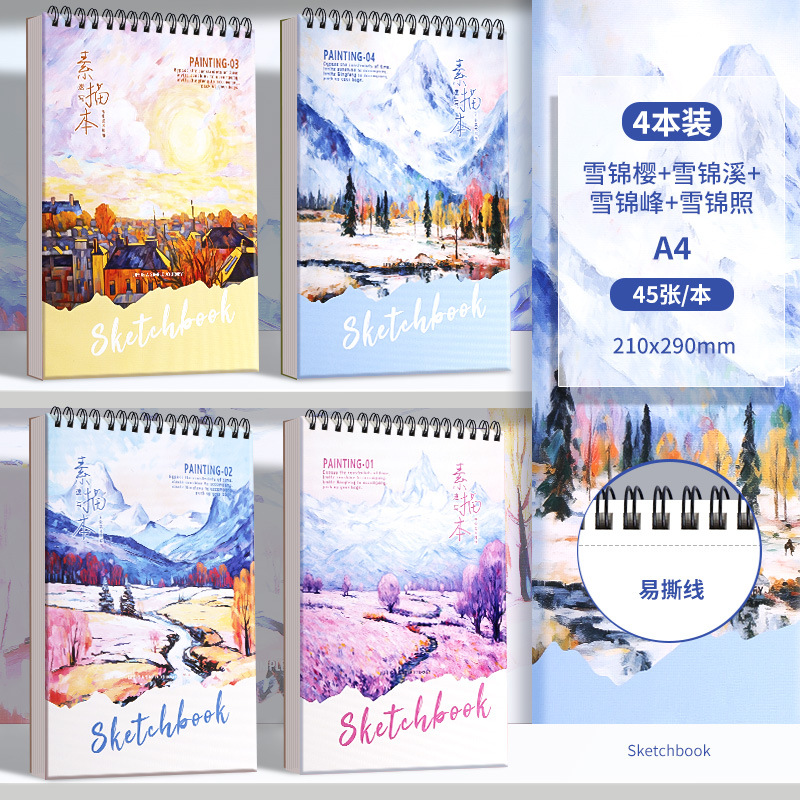 Эскизная книга 8K Утолщенная Эскизная книга A4 Для студентов Искусства Специальный альбом с листами Пустая книга 8-открытая Книга на спирали