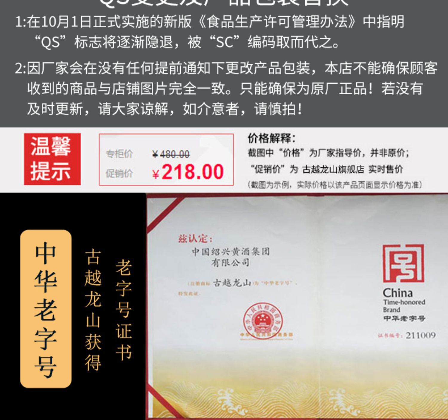Желтое рисовое вино Гуюэ Луншань, 500 мл * 6 бутылок, трехлетнее