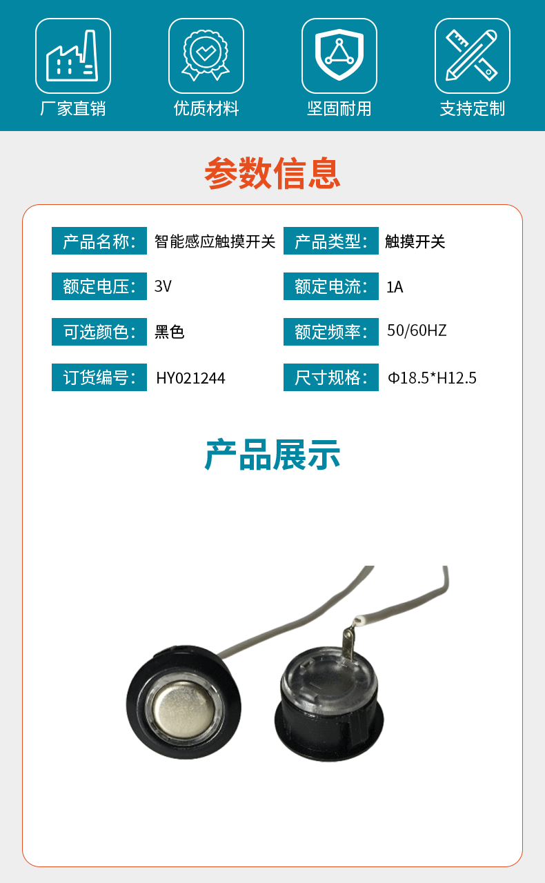 ![]() | Φ16 touch head black with one foot without light (card type) | ¥1.5 / ≈ 18 ₽ | 9999 | 5825023246032 | |