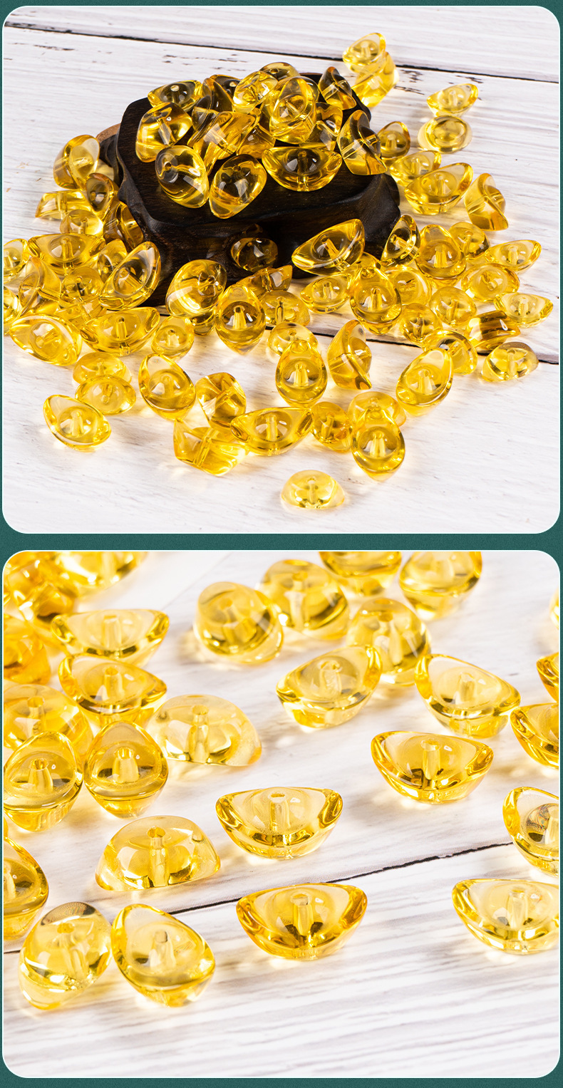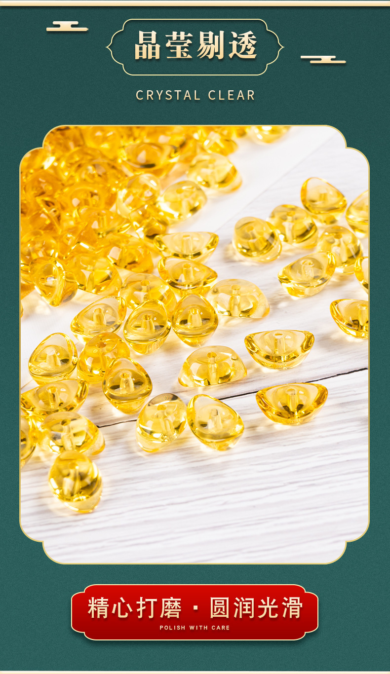 Малый золотой слиток с отверстиями, желтый кристалл, стеклянный малый золотой слиток, перфорированная кристаллическая бусина для занавесок, освещение с подвесными кристаллическими украшениями