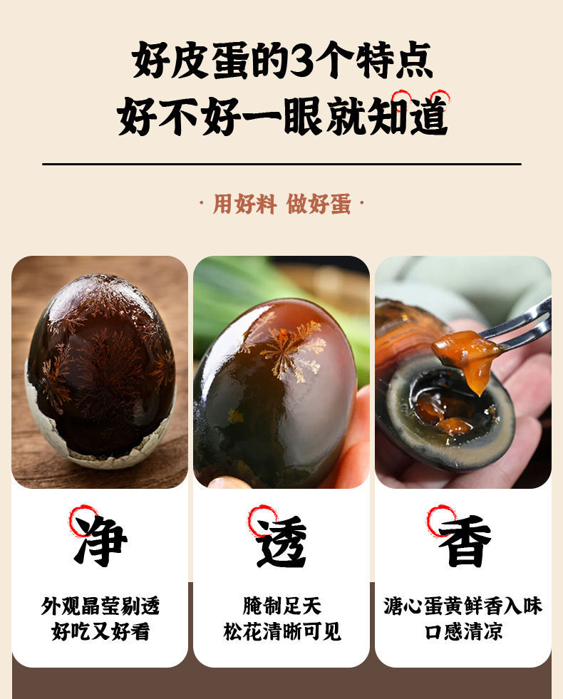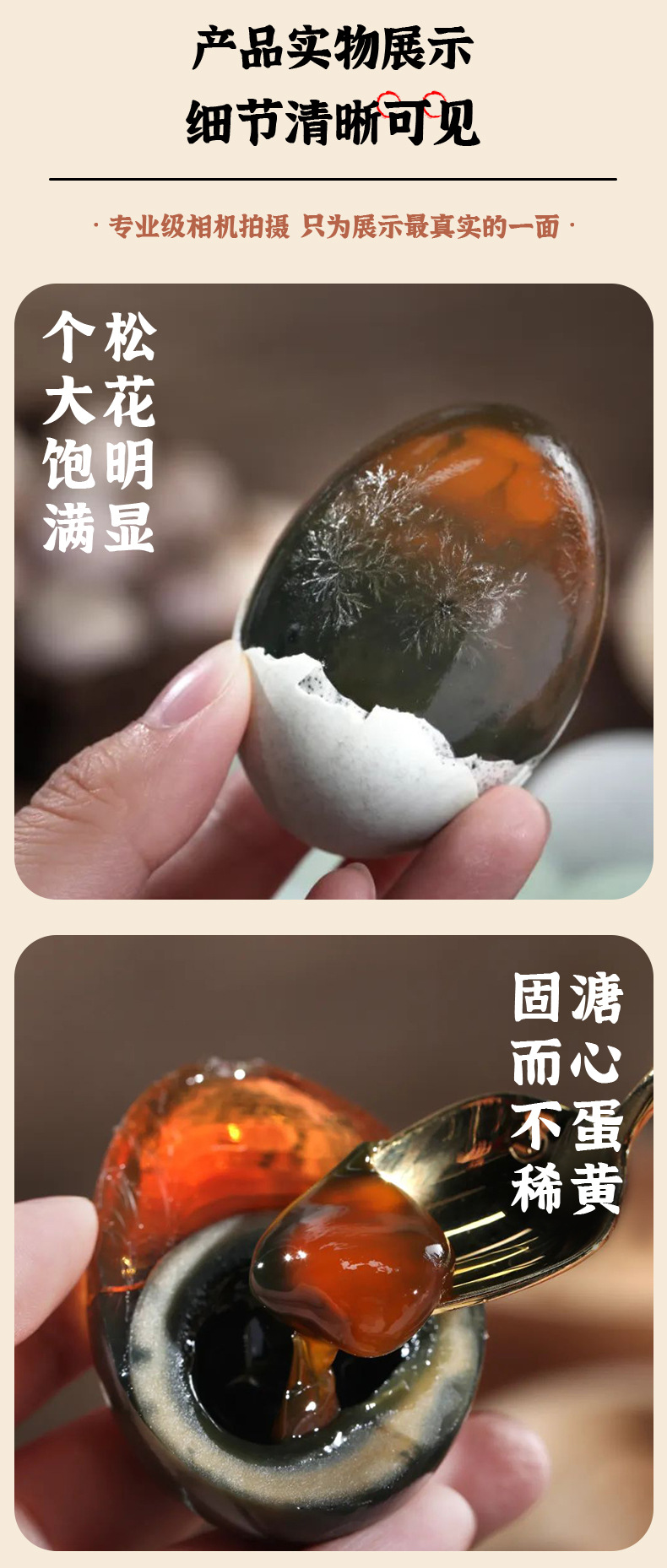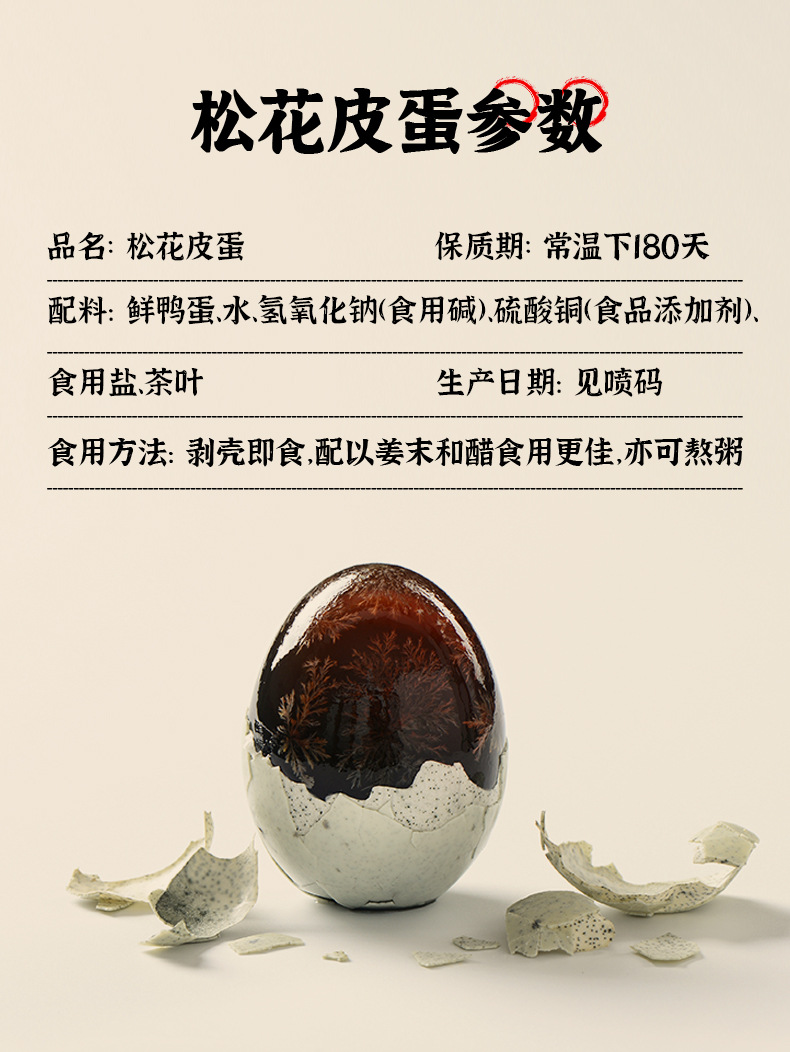 Сырьё и ингредиенты Fresh duck eggs, water, sodium hydroxide (food alkali), copper sulfate (food additives), edible salt, tea