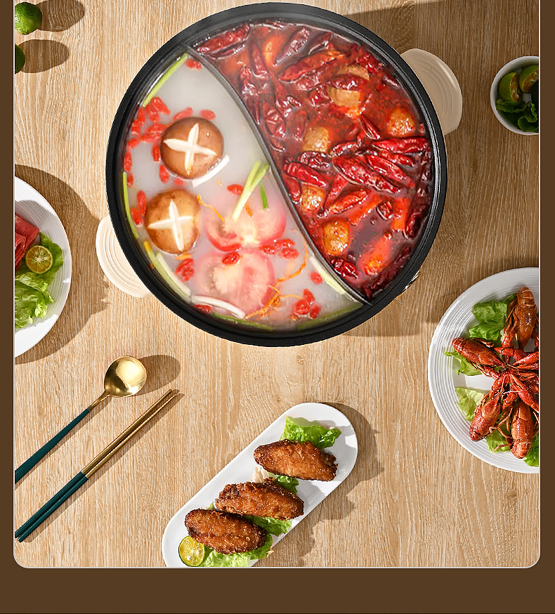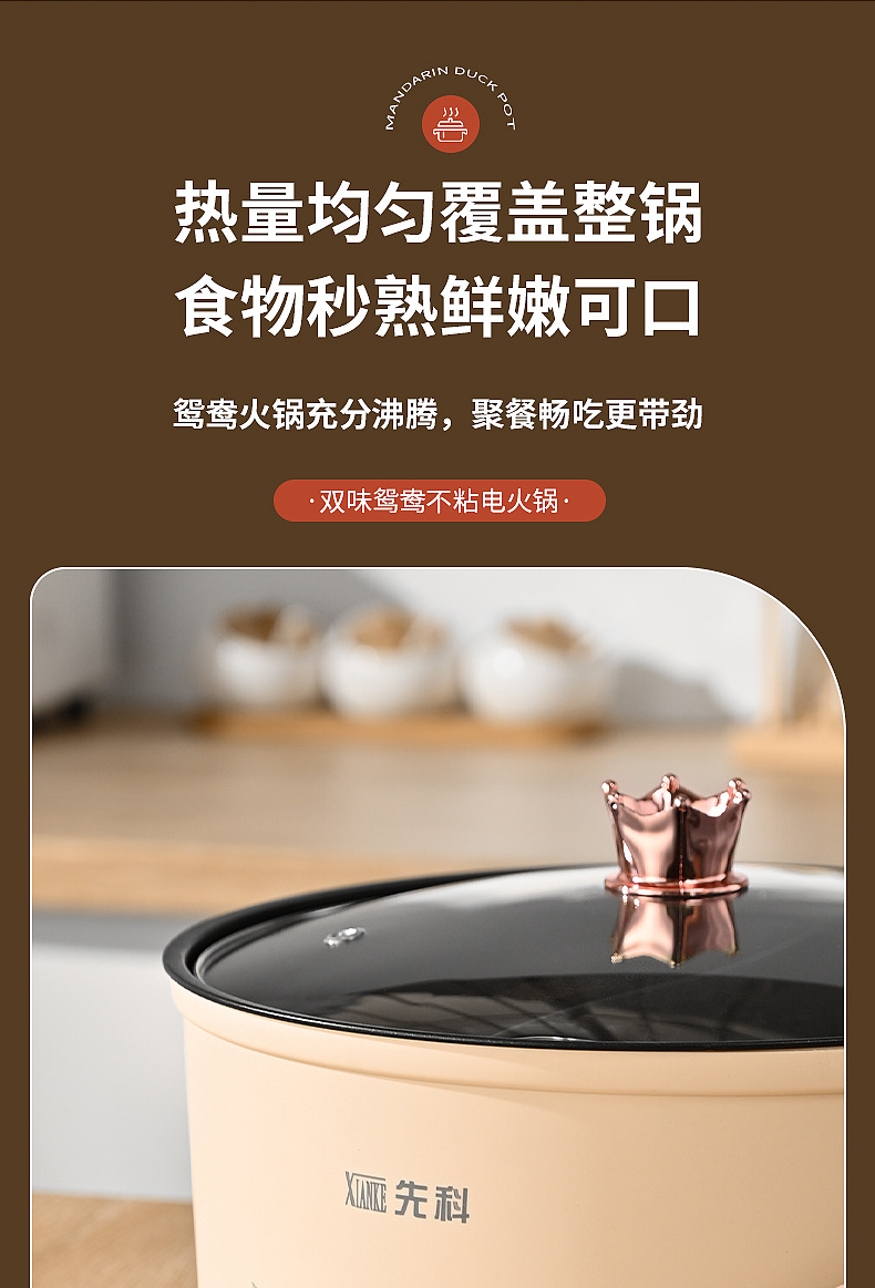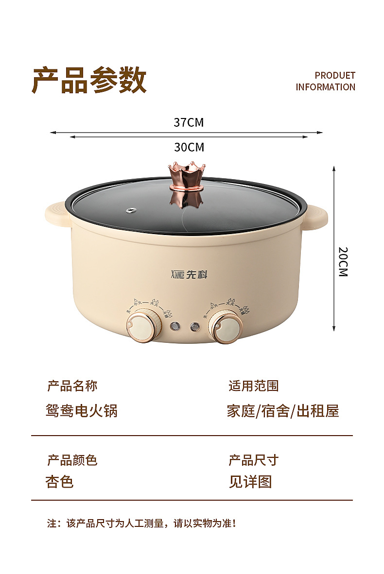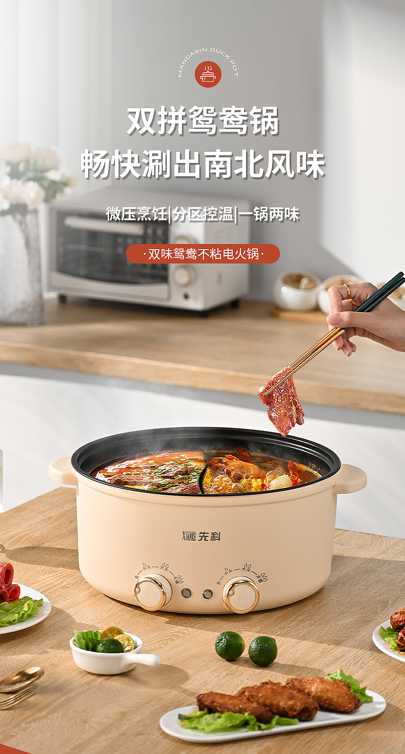 粤帝斯直供 先科多功能电热锅宿舍大容量电火锅鸳鸯双控电锅 跨境