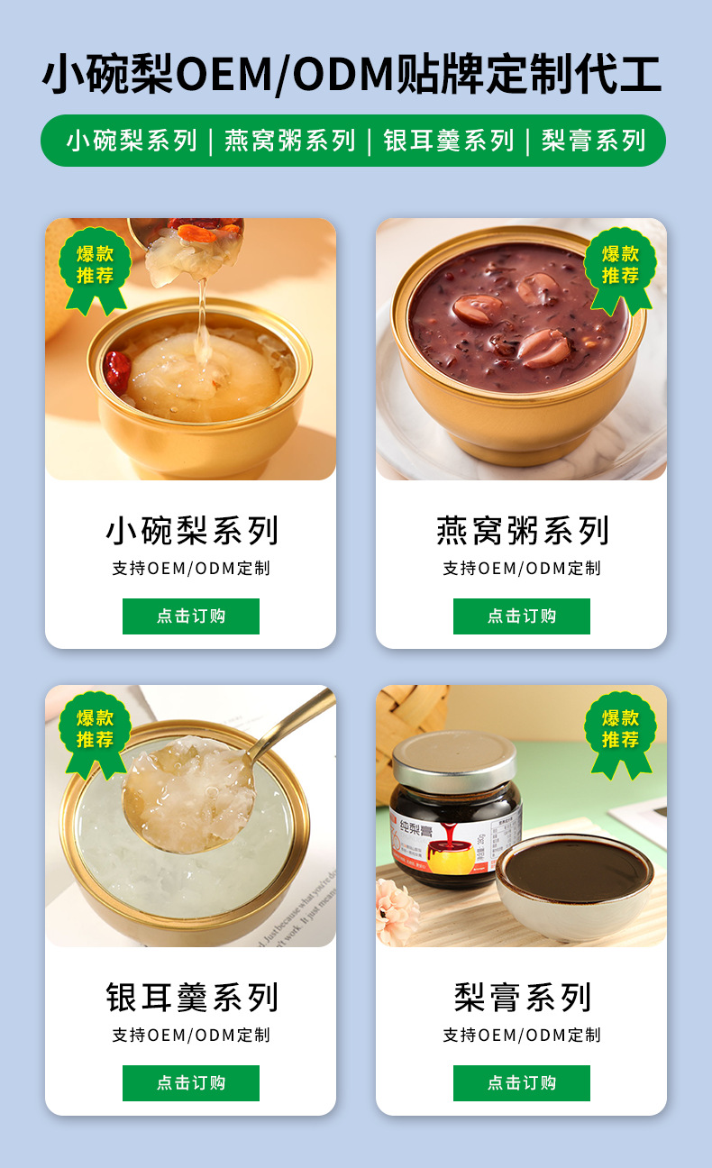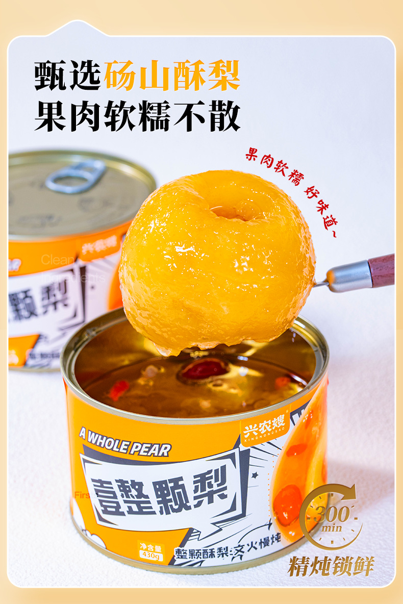 ![]() | Fresh stewed whole pear 430g package | The whole box is more discounted (24 cans/box) | 2шт: ¥5.10, 4шт: ¥4.70, 24шт: ¥4.50 | 0 | 5828375826418 |