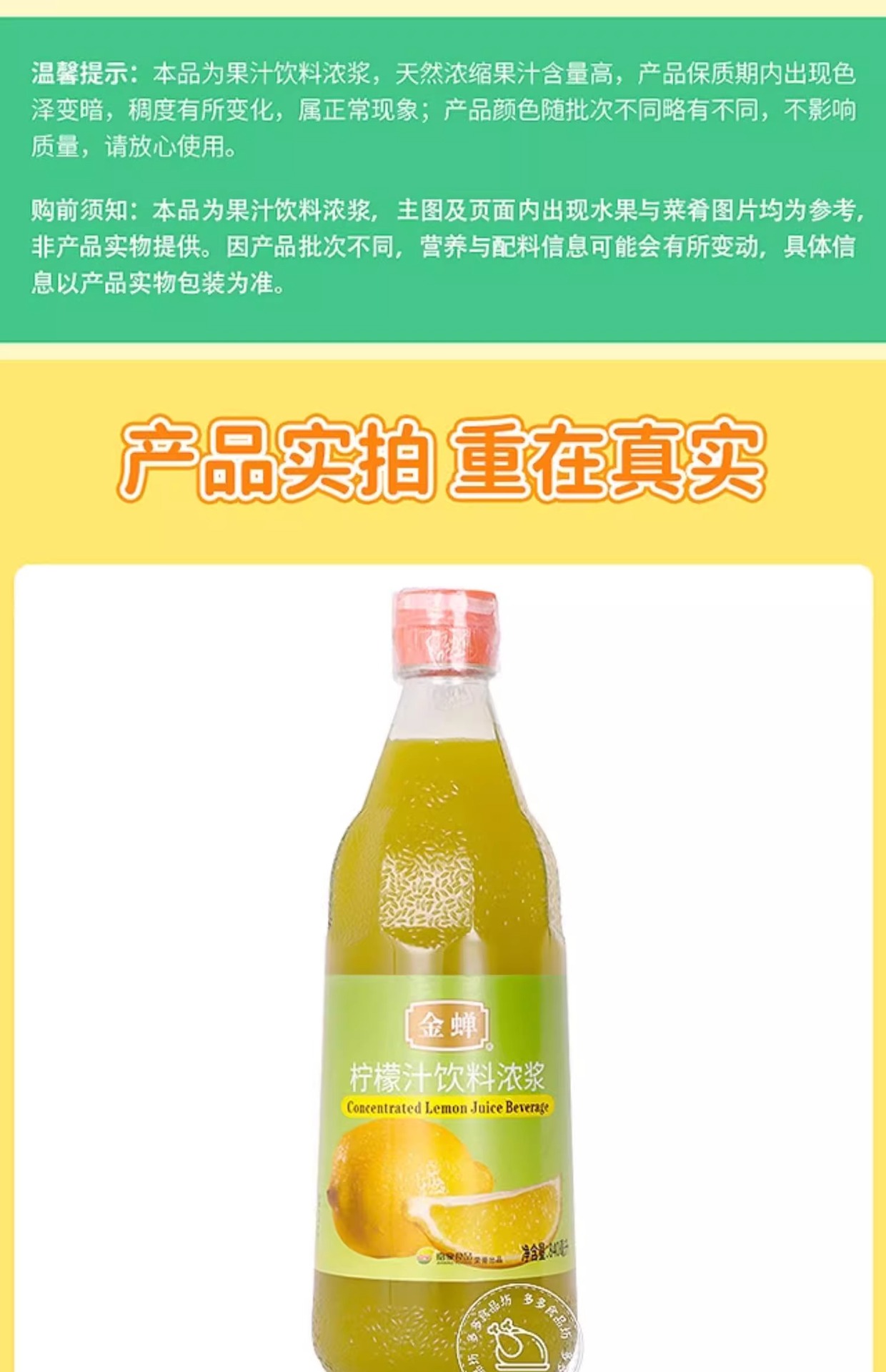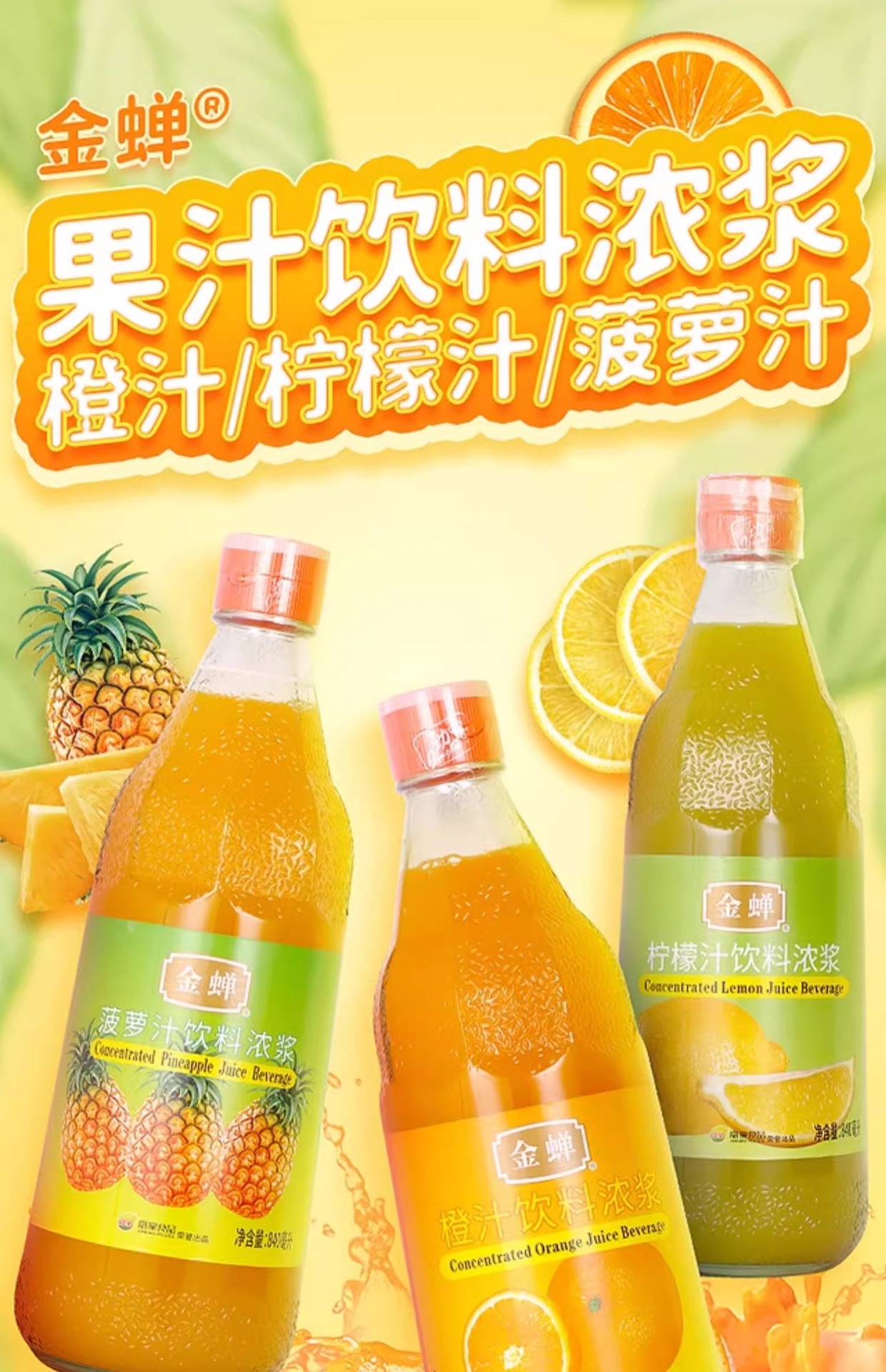 Концентрированный сок лимона и апельсина Jinba/Jinchan 840ml, сырьё для коммерческого приготовления, выпечки, молочного чая