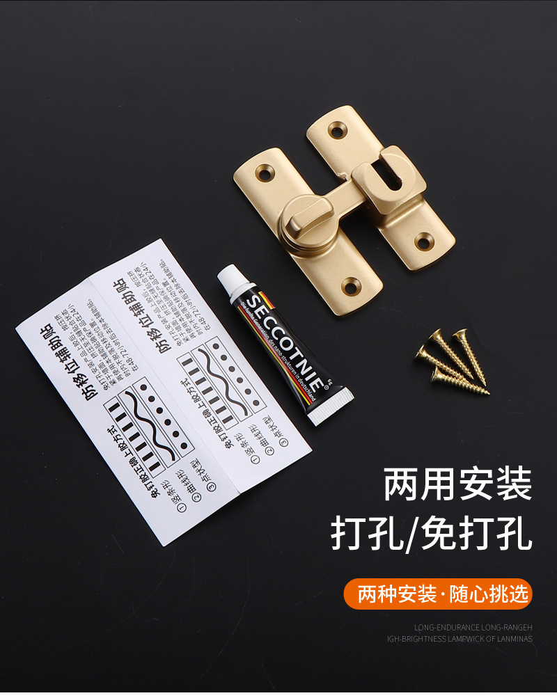 Замок для ванной комнаты отеля и окна утолщенный без сверления алюминиевый сплав дверной замок с легким закрыванием противоугонный замок