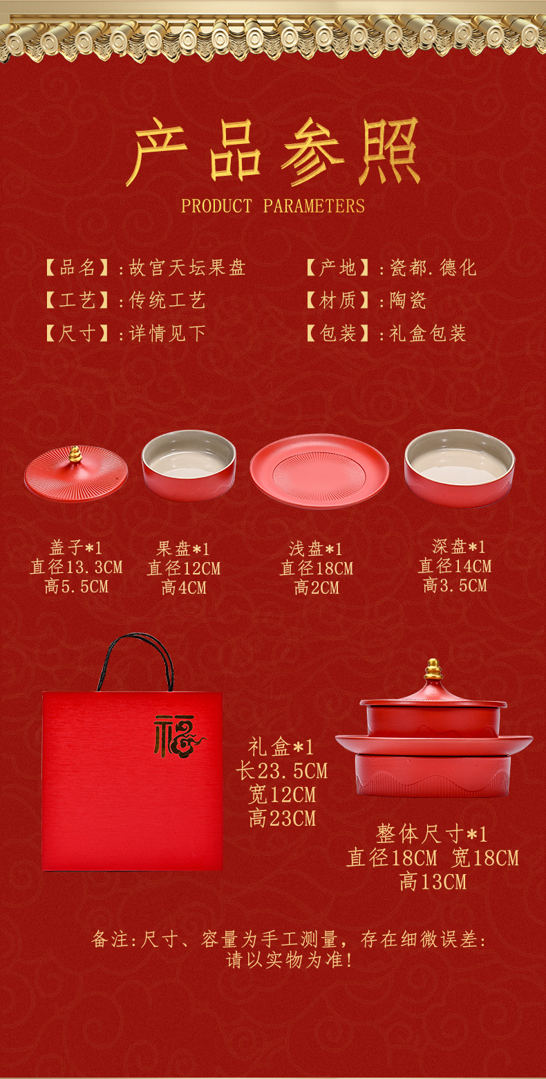 Фруктовая тарелка из красной керамики Запретного города в подарочной коробке, свадебный подарок, подарок на возврат, сопутствующий подарок, фарфоровая тарелка Храма Неба в подарочной коробке