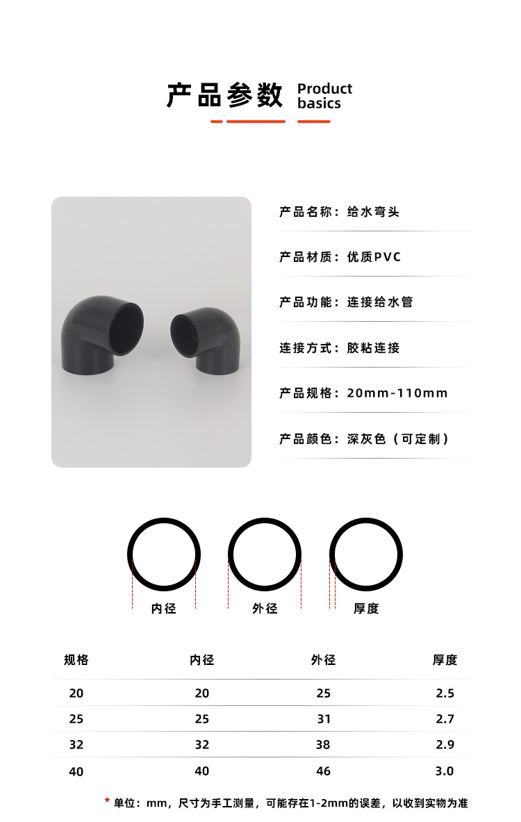 UPVC уголок 90 градусов темно-серый, фитинги для пластиковых труб водоснабжения 20 25 32 40 50