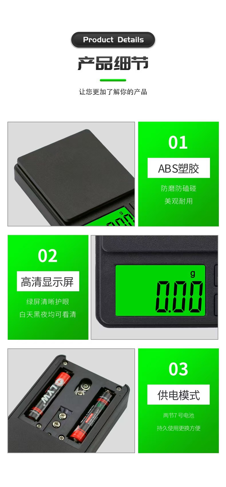 ● 材质:ABS &不锈钢秤盘