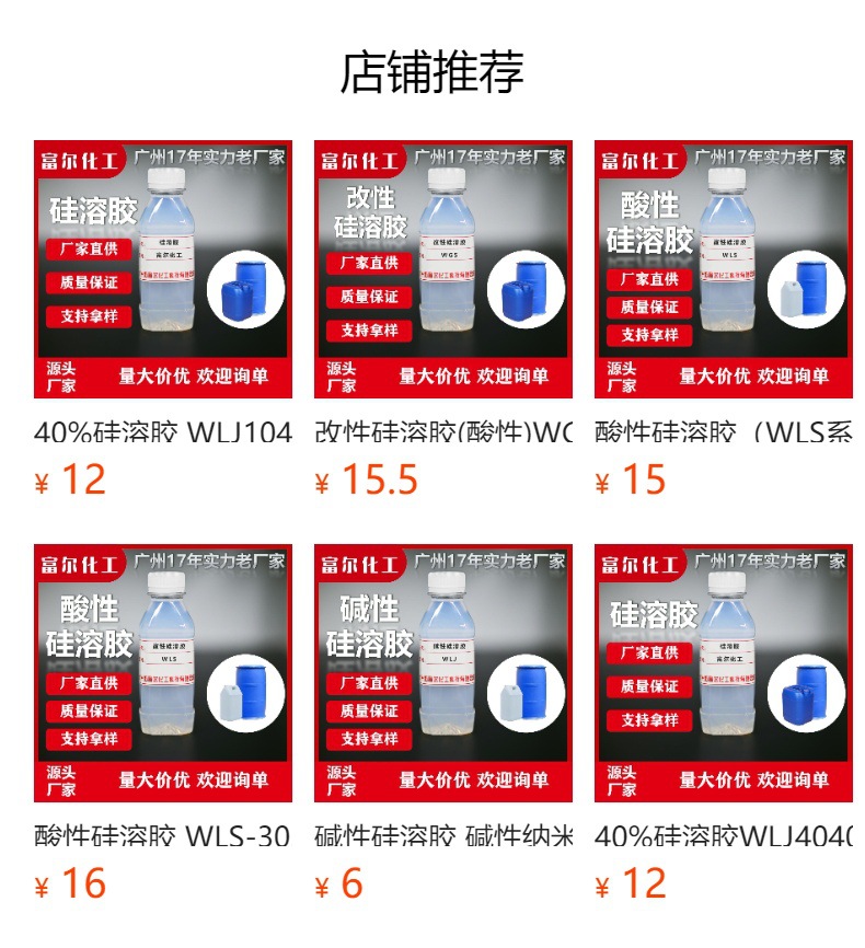 本公司生产的高含量小粒径硅溶胶WLJ-1040粒径均匀,40%高含量,质量稳定,具有较高的粘结性,可广泛用于各种行业,是我司主要生产硅溶胶产品之一。在涂料行业,硅溶胶能提升涂料硬度、耐磨性、耐候性、耐高温性、较好的涂料耐擦洗,用于汽车漆、船舶防腐漆、建筑涂料等。在纺织行业,硅溶胶改善面料抗皱性、耐磨性和防火性。