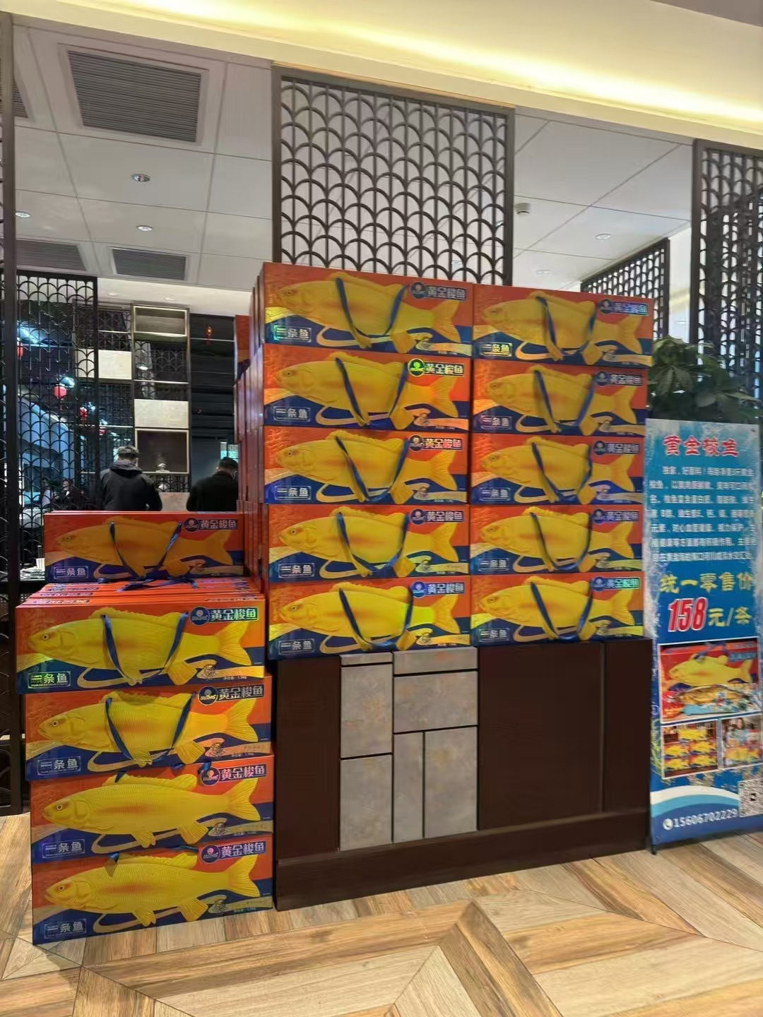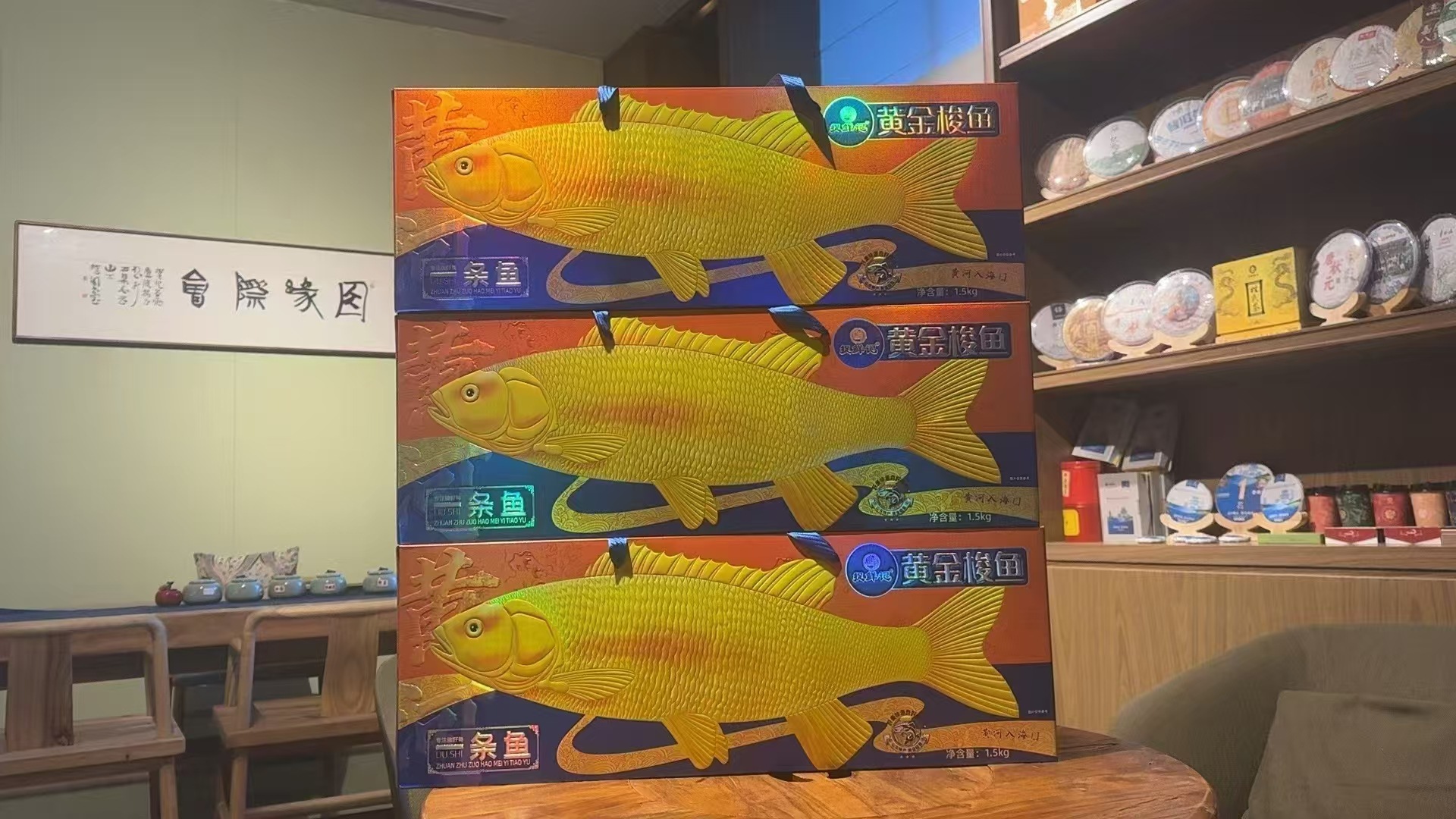 Хороший старт в финансах, банковском деле и страховании: подарок в виде золотого барракуды, символизирующего удачу и процветание, в подарочной коробке