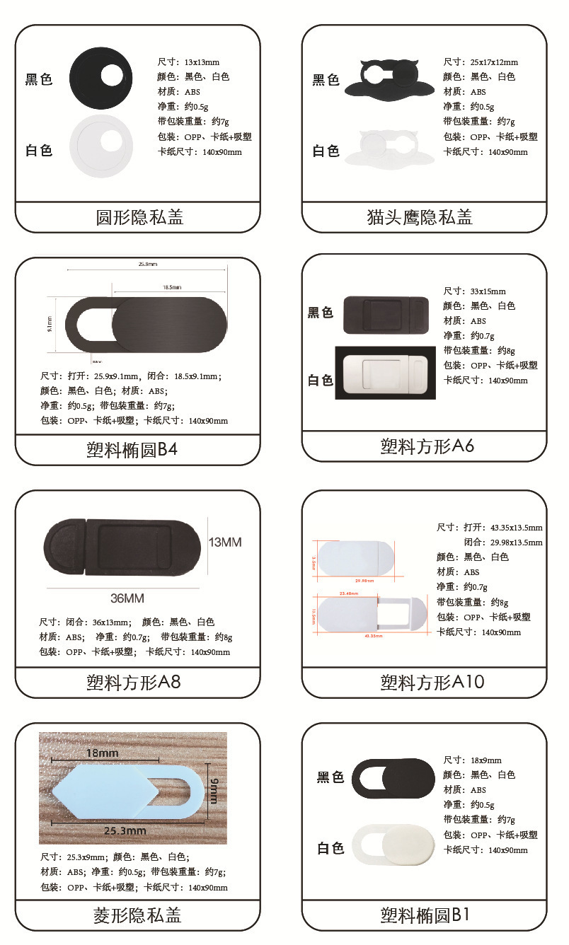 ![]() | Usb large black privacy cover | ¥1.2 / ≈ 14 ₽ | 1245077 | 5664615484535 | |