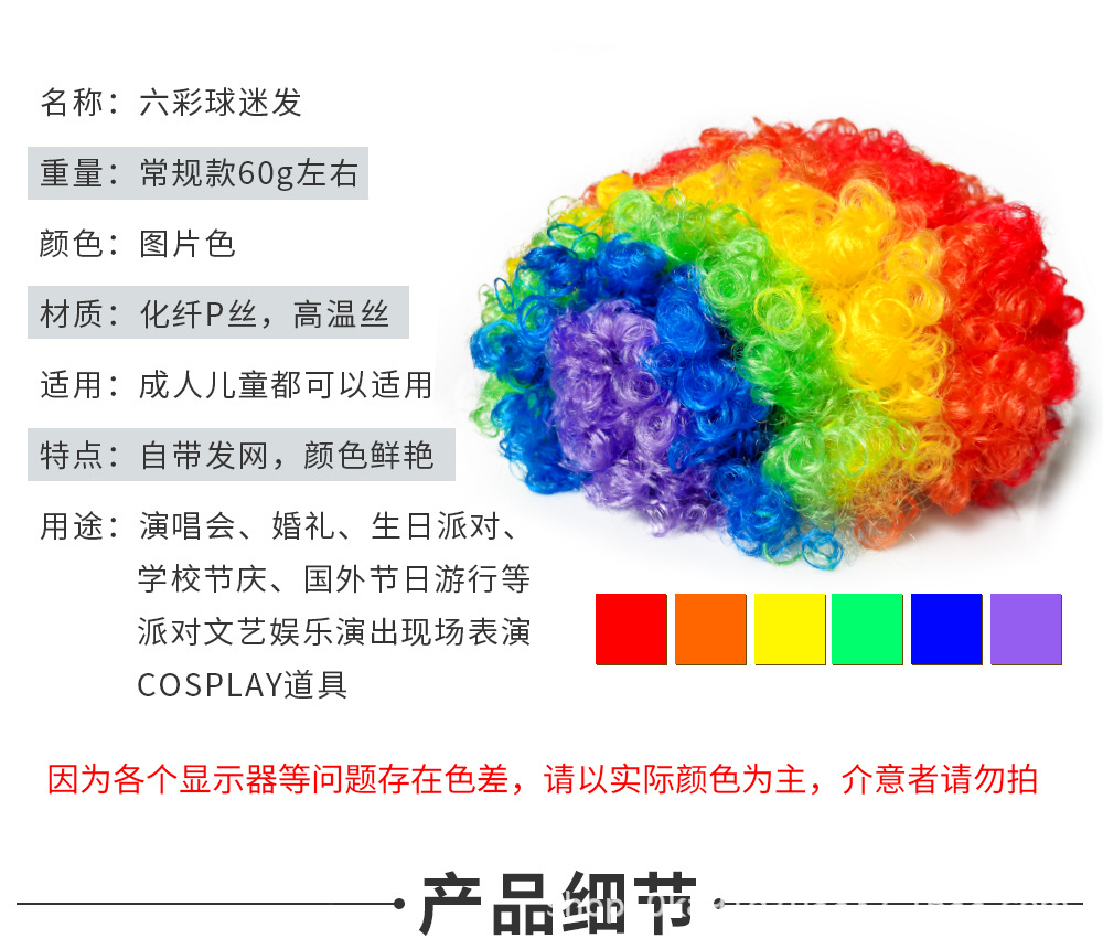 Парик-клоун с афро, круглые кудри, цветной, для выступлений и праздников