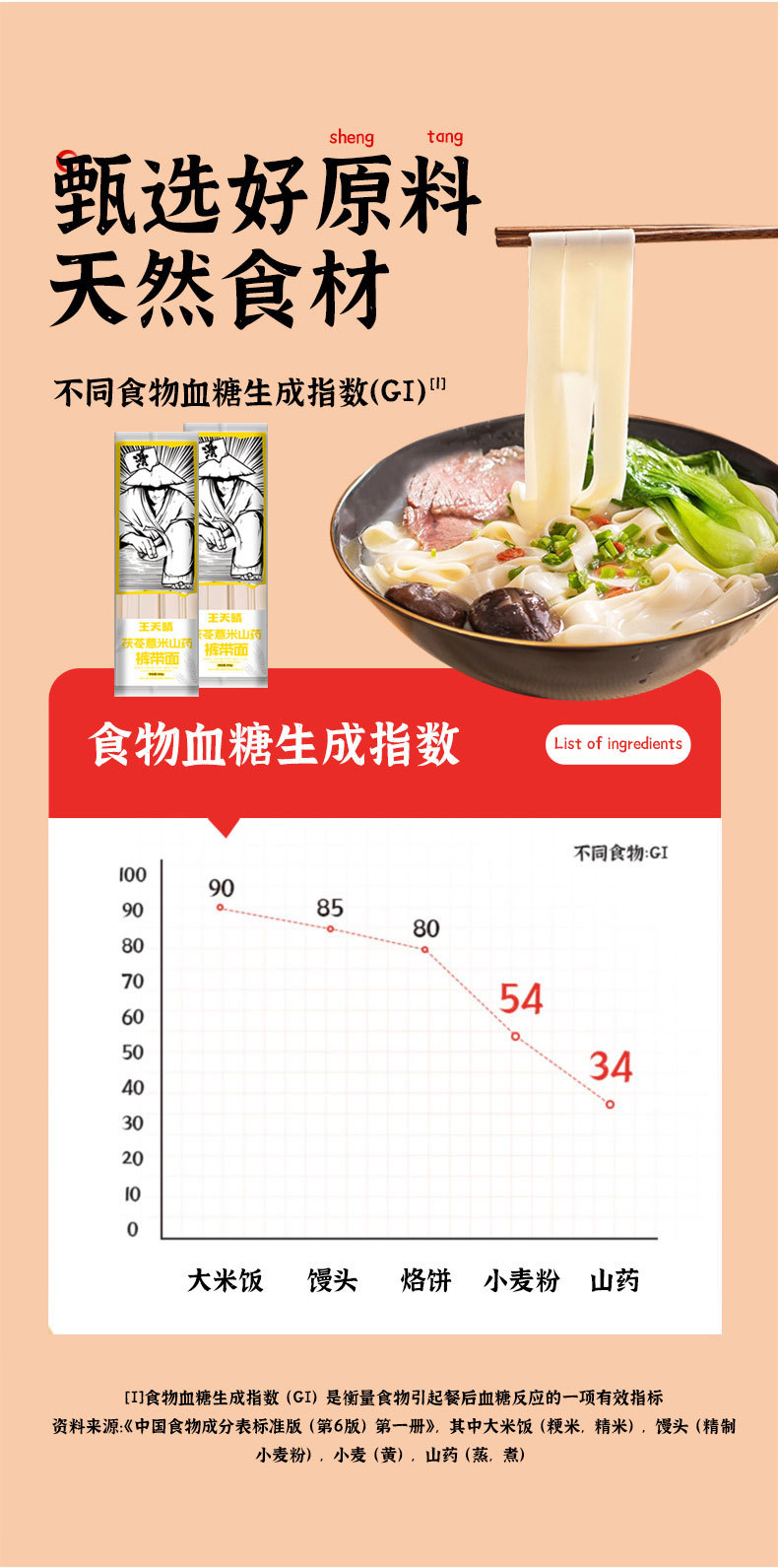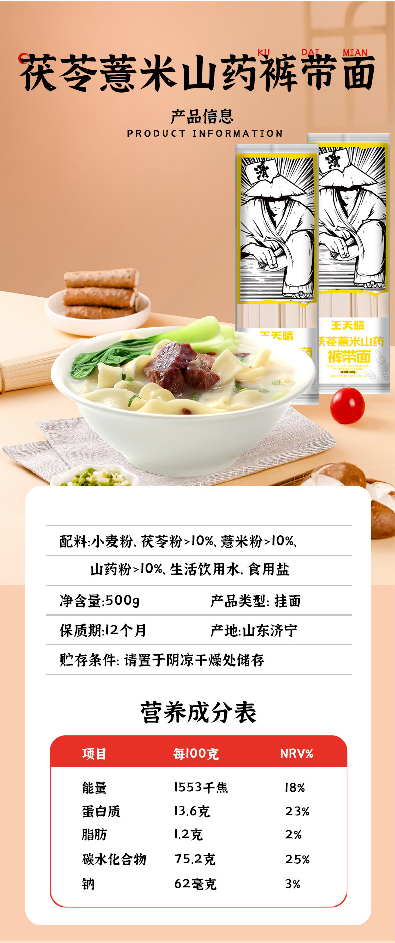 Дропшиппинг лапша Ван Тяньцинь с порией, ячменем и ямсом, 500г, широкая лапша, лечебная и пищевая одного происхождения