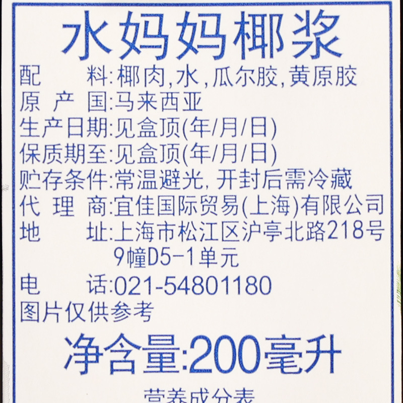 Сырьё и ингредиенты Coconut meat, water, melon glue, xanthan gum, etc., subject to the actual information on the outer packaging of the product