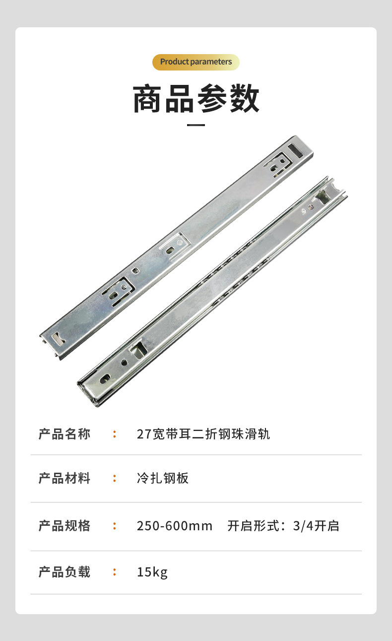 27 широкая полоса уха двухслойный стальной шариковый направляющий рельс, направляющий рельс для ящика и шкафа 10 дюймов - 20 дюймов оптовая продажа