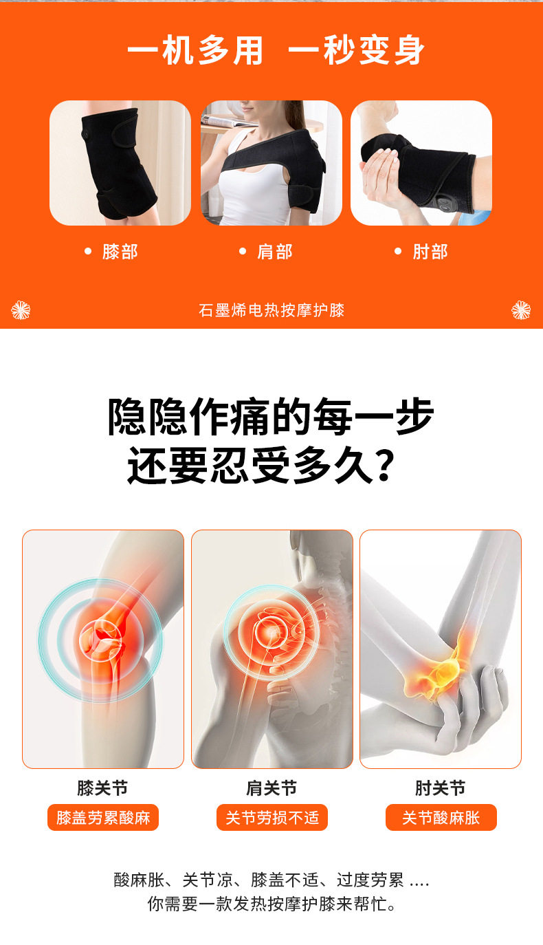Кросс-бордерный графеновый массажёр для колен, электрический нагревательный наколенник, тёплый для пожилых людей с холодными суставами