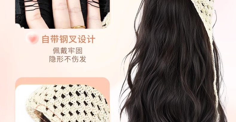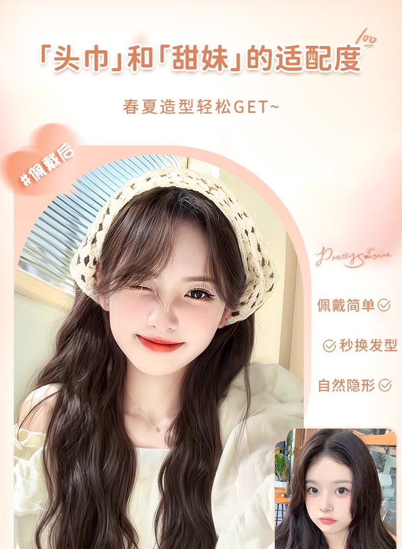 Парик с треугольным тюрбаном, однотонный, длинные кудрявые волосы, летний пасторальный стиль, корейский стиль, полукепка