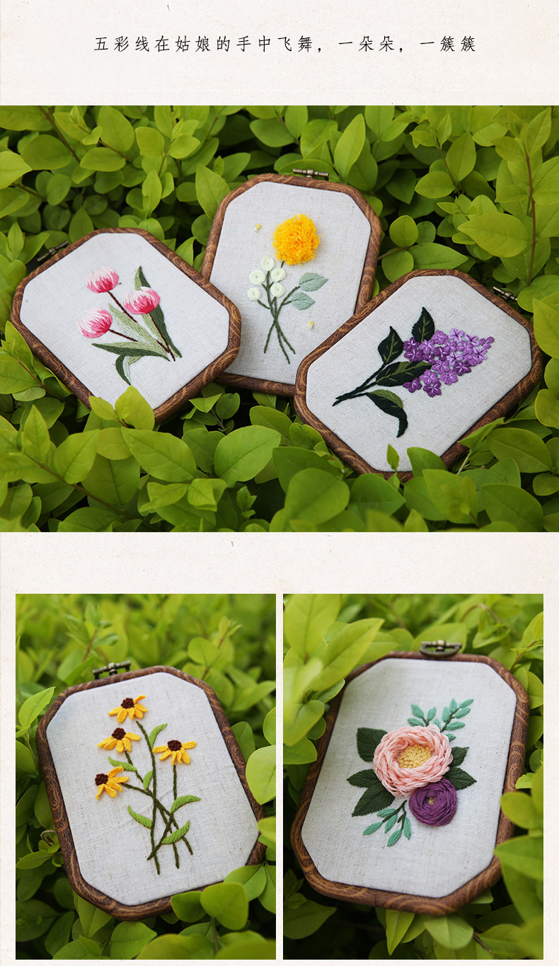 Восьмиугольная вышитая растягивающаяся картина, ручная вышивка, DIY, набор для вышивания для начинающих, цветы и трава, европейская картина