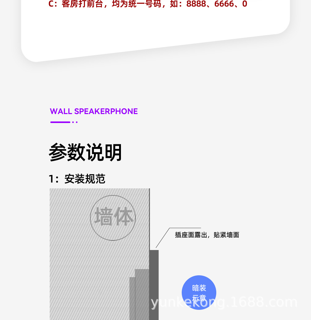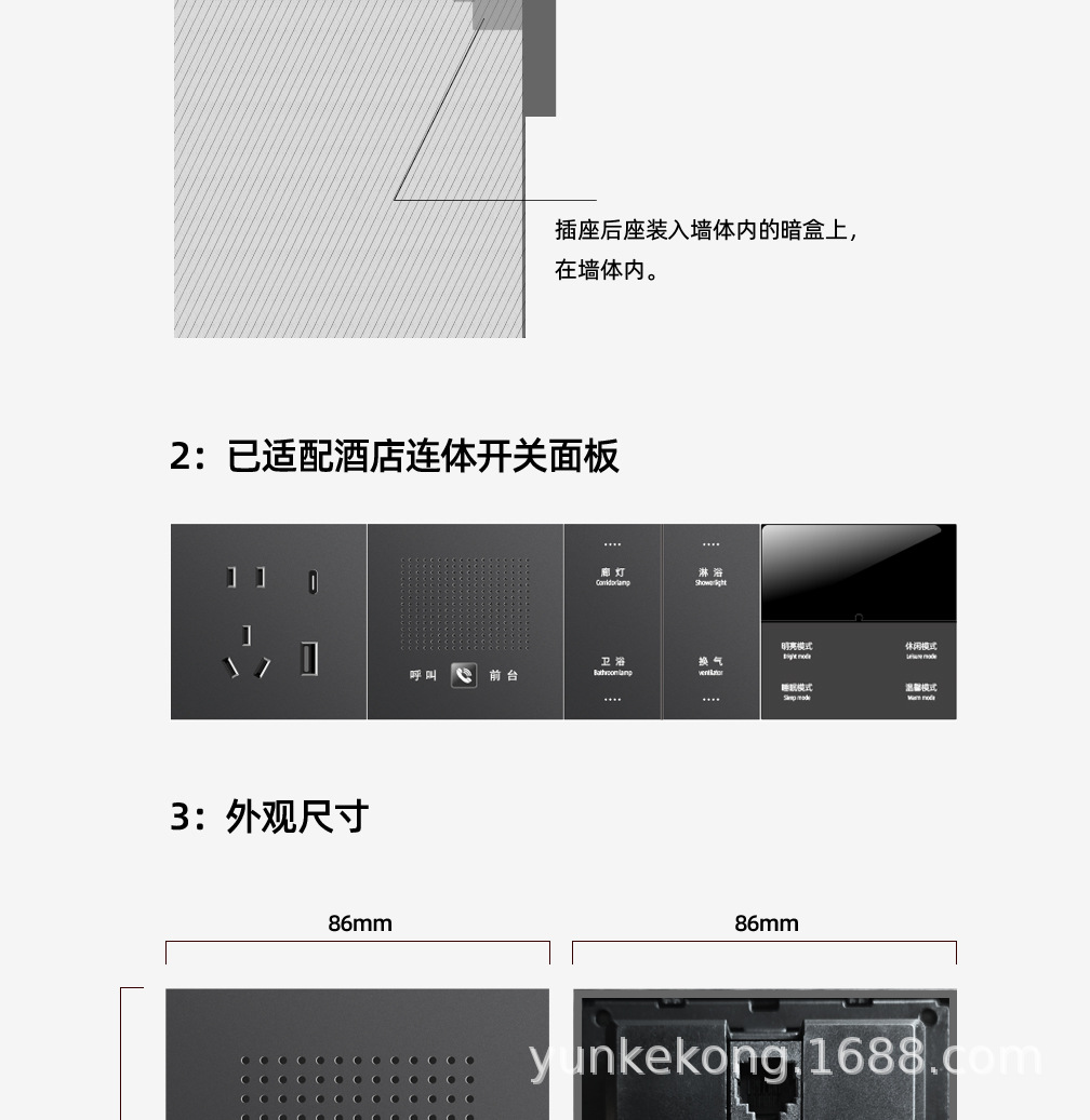 1:产品采用86型暗装。