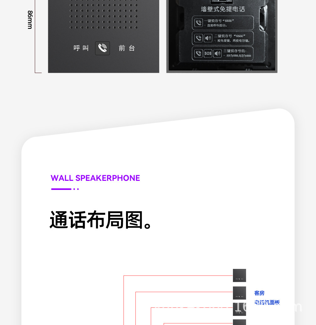 Телефонный панельный телефон типа One-Touch Call 86 скрытого встраивания с функцией громкой связи, настенный SOS пейджер