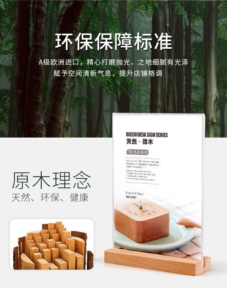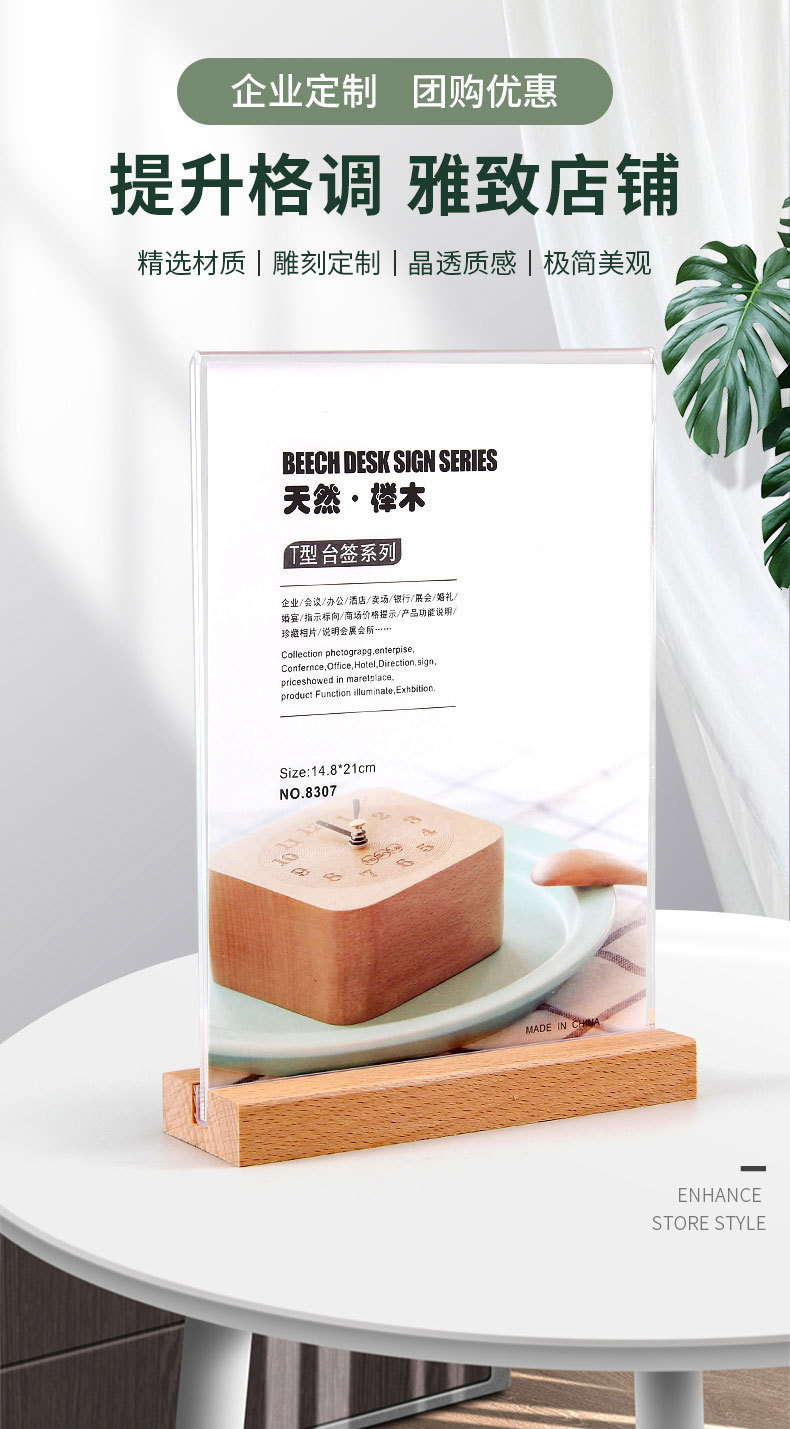 Подставка для карточек A4 из акрила, знак на столе из бука, рекламная подставка A5 из дерева, меню для стола, цена на напитки
