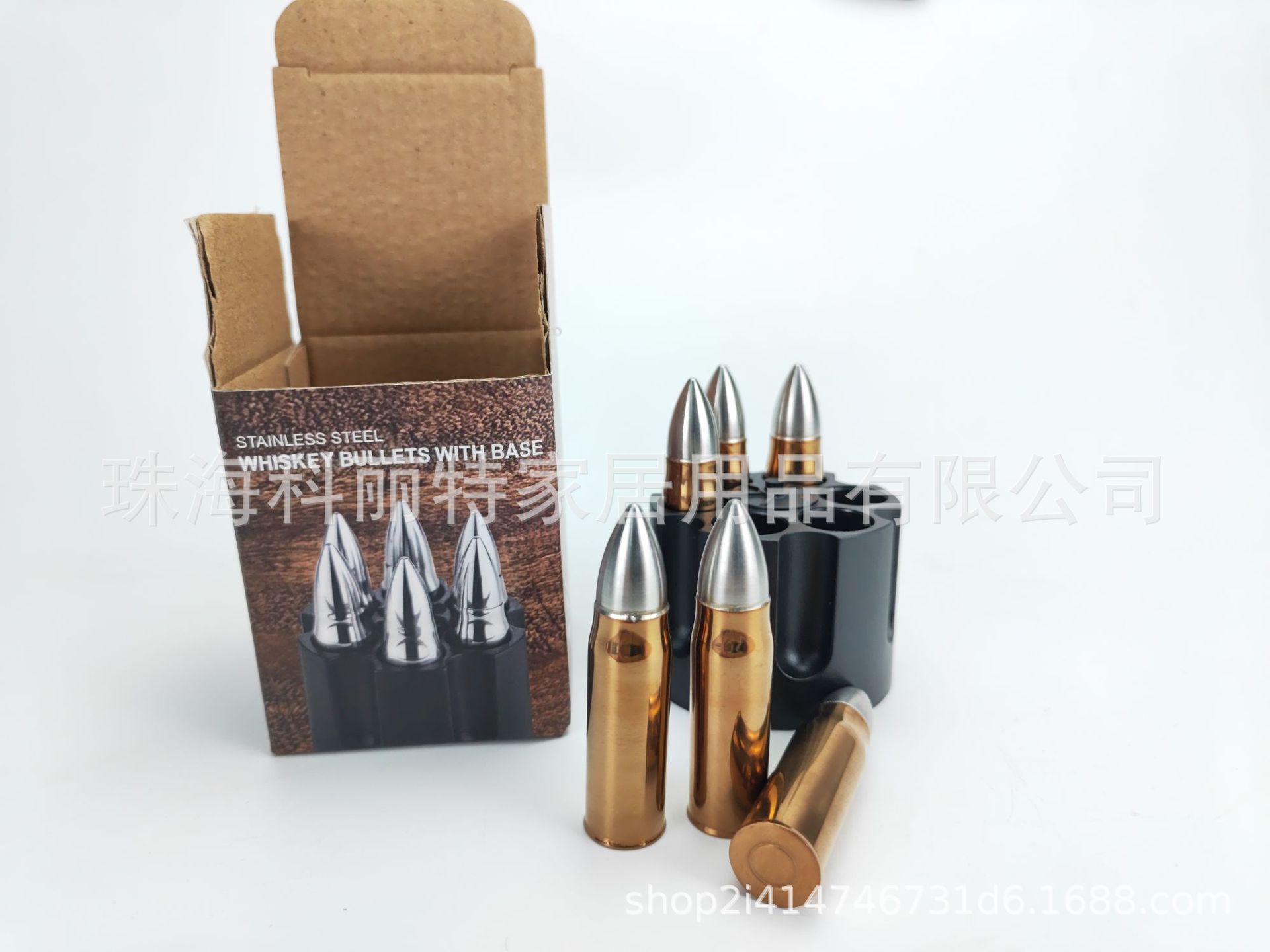 Прямые продажи с фабрики ледяные кубики в форме пули двухцветные золотые и серебряные из нержавеющей стали для охлаждения красного вина и виски