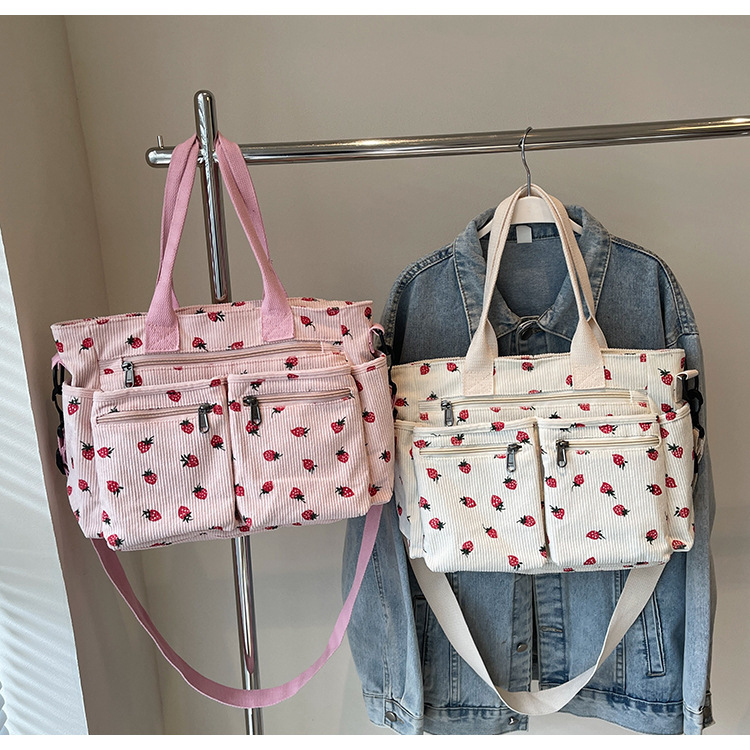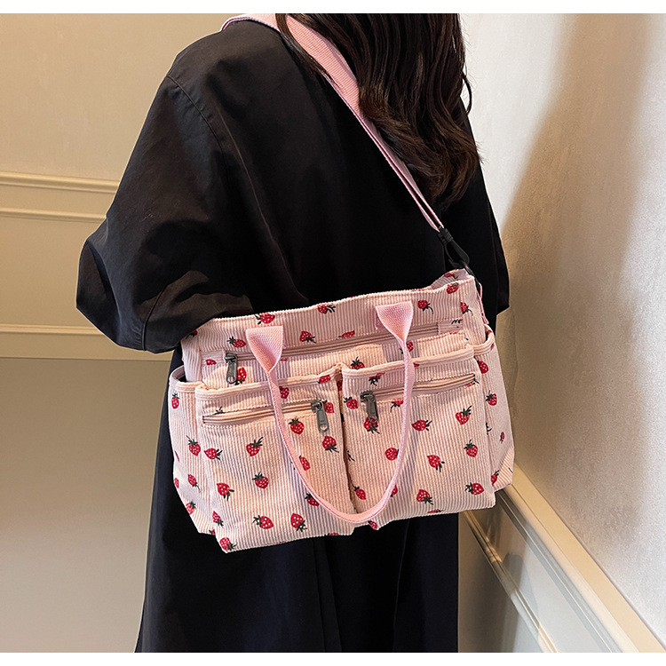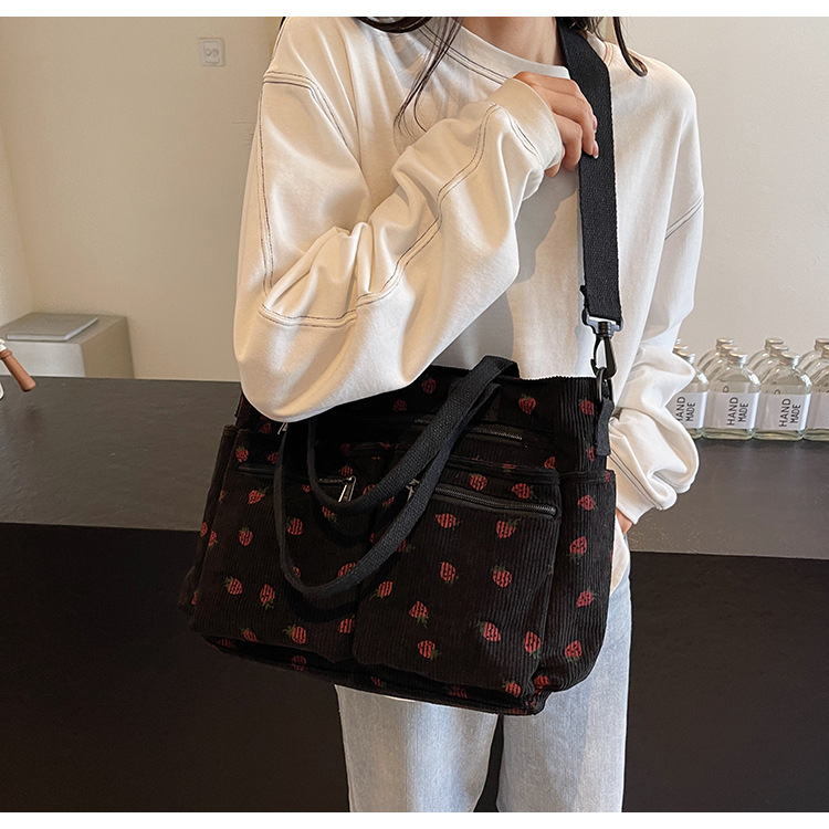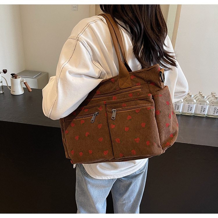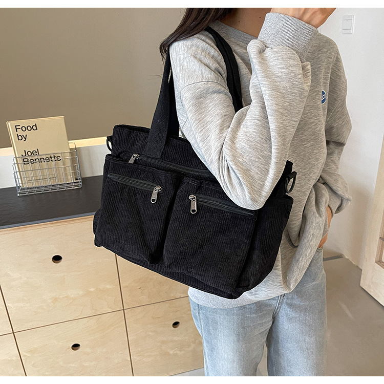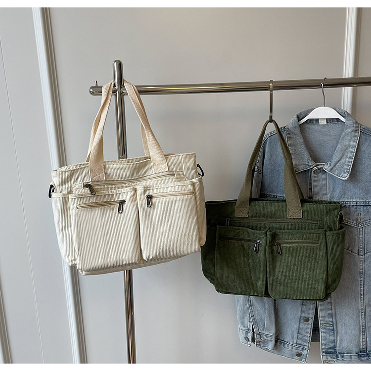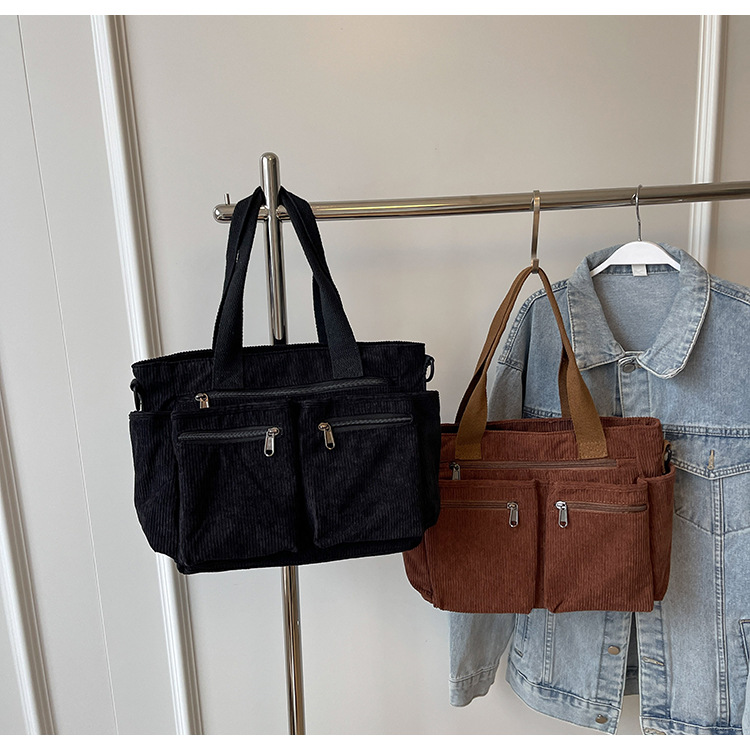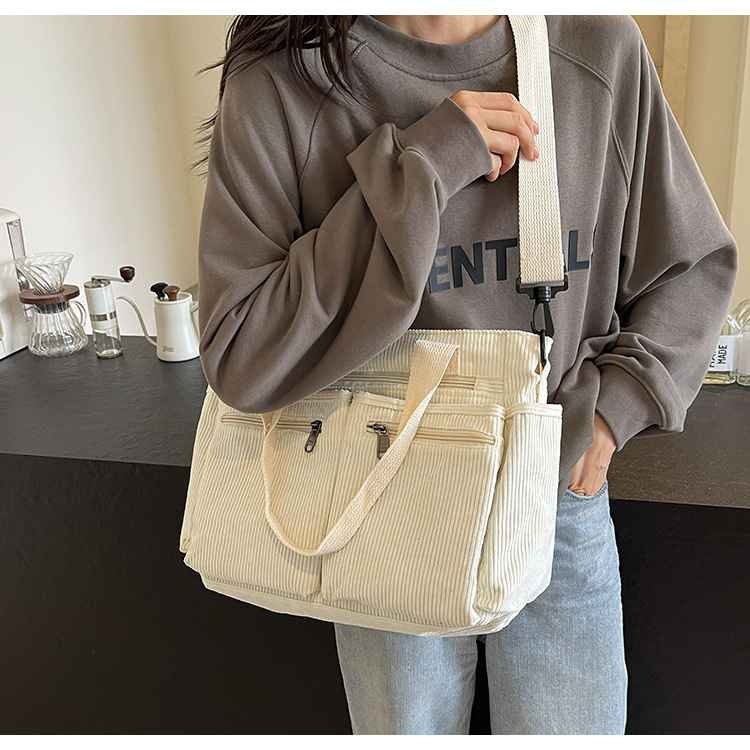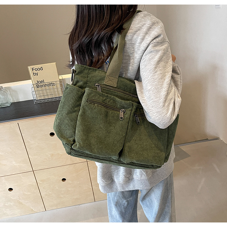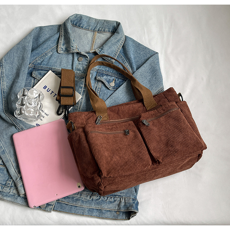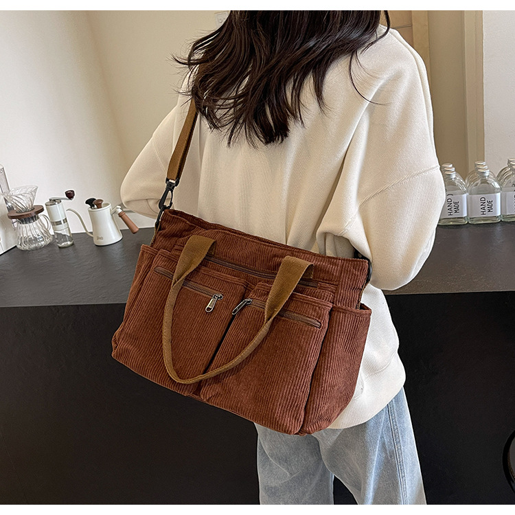Сумка через плечо для женщин из кордюроя, с несколькими карманами, большая емкость, повседневная сумка