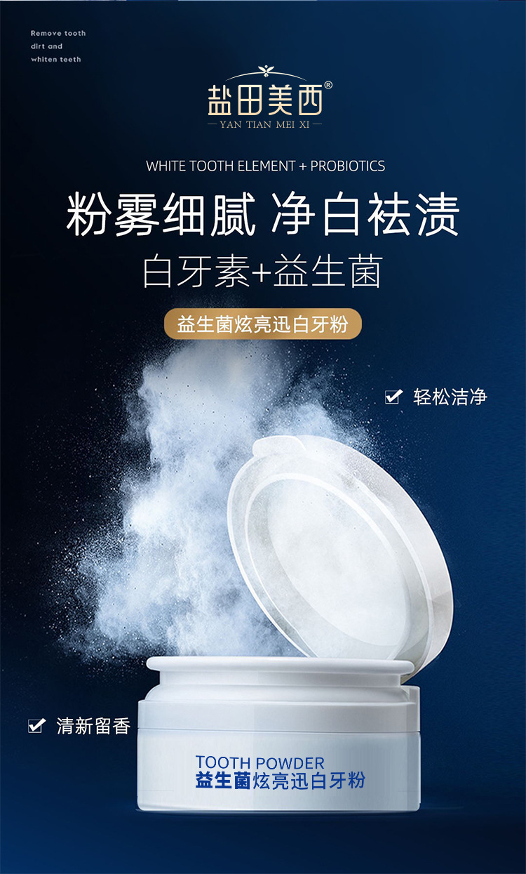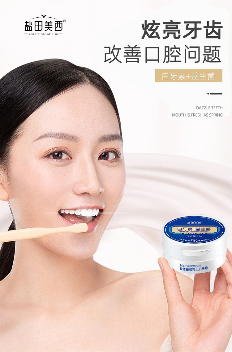 ![]() | Yantian meixi probiotic brightening and white teeth powder 50g | 1шт: ¥1.60, 165шт: ¥1.55, 1650шт: ¥1.50 | 90246 | 5671687009632 |