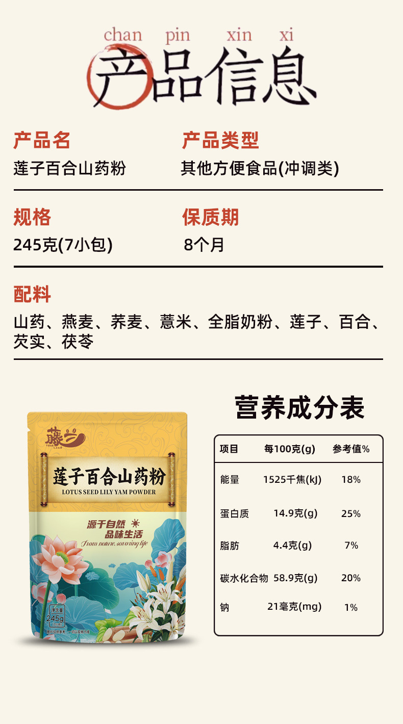 Номер товара Tenglan lotus seed lily yam powder 245g bag