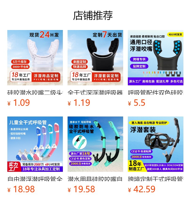 硅胶潜水咬嘴二级头调节器浮潜咬嘴通用口径干式呼吸管一次性咬嘴