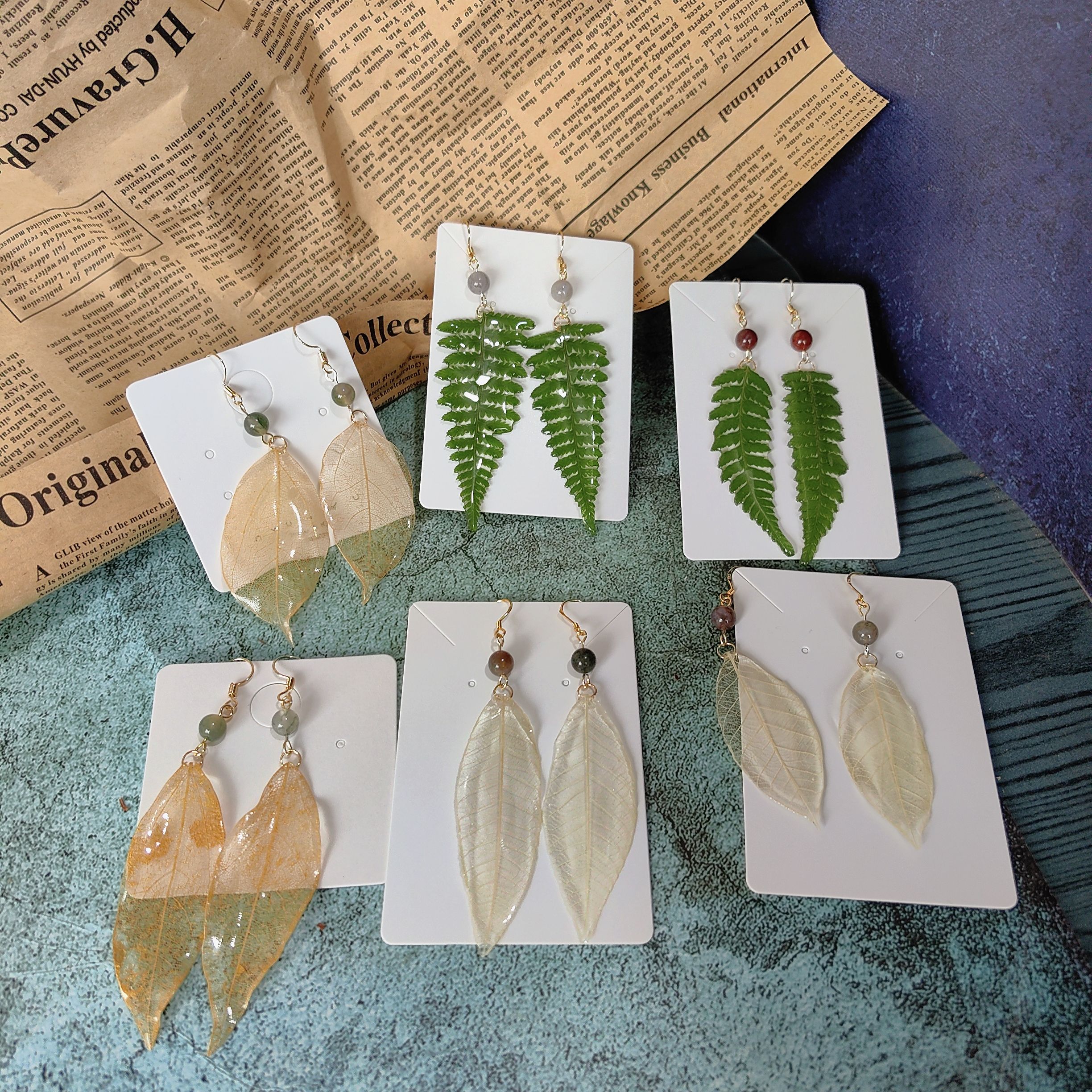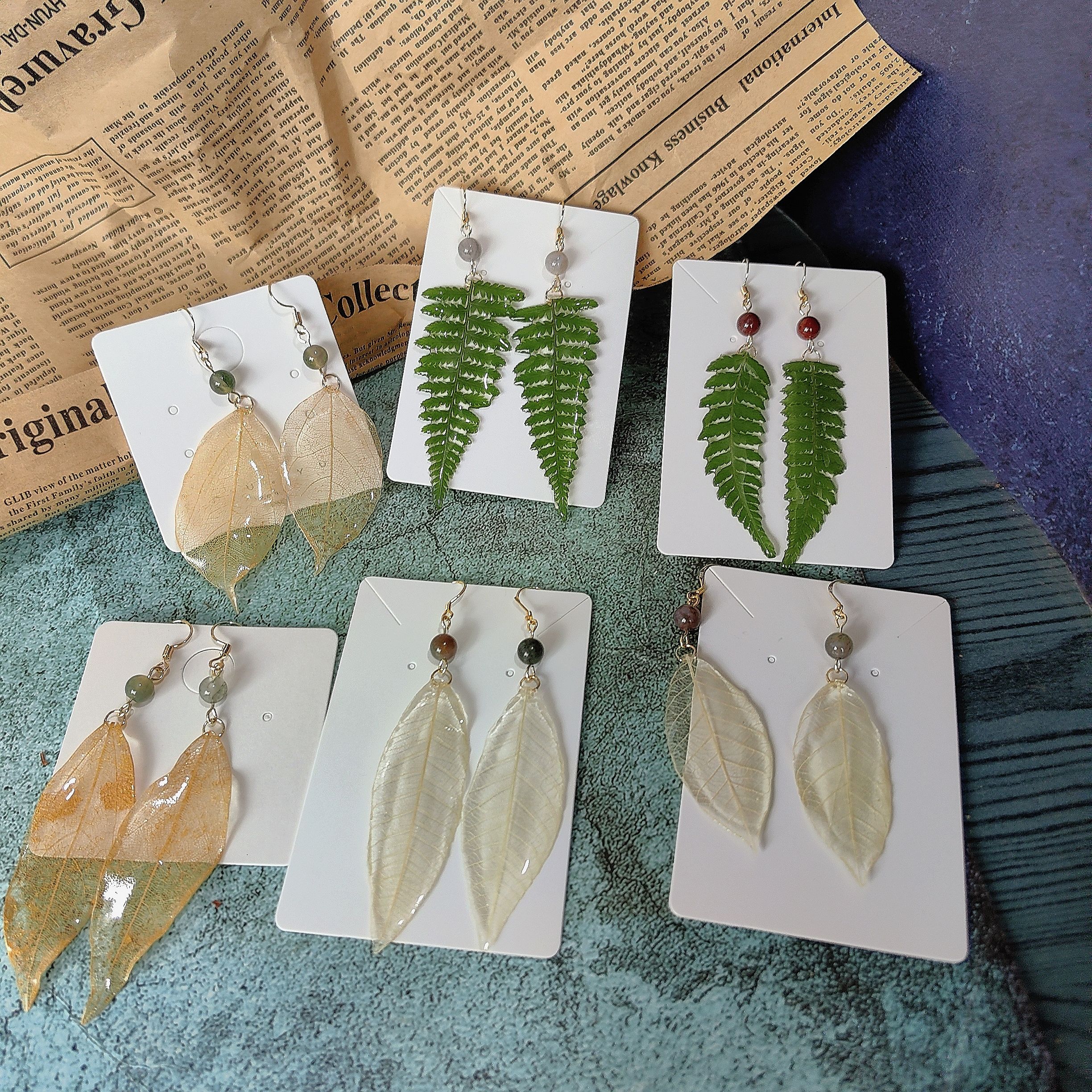 Серьги из настоящих листьев, капли резины, папоротник, маленькие свежие, креативные, нишевые серьги из настоящих листьев для женщин