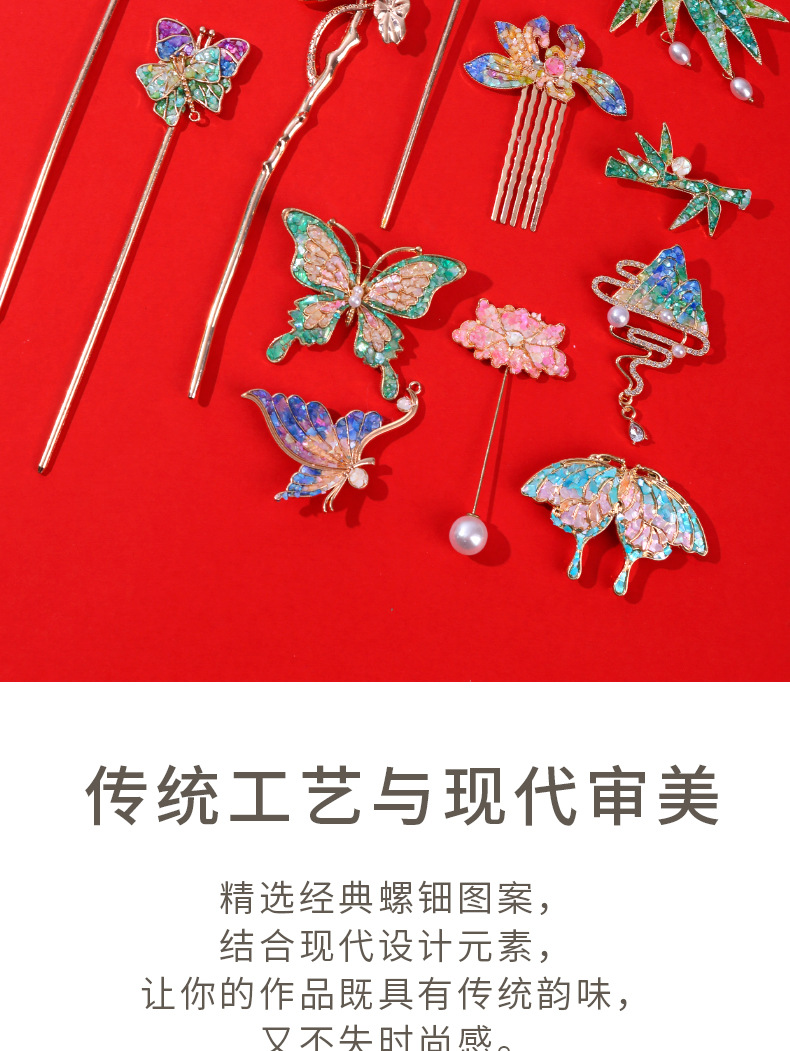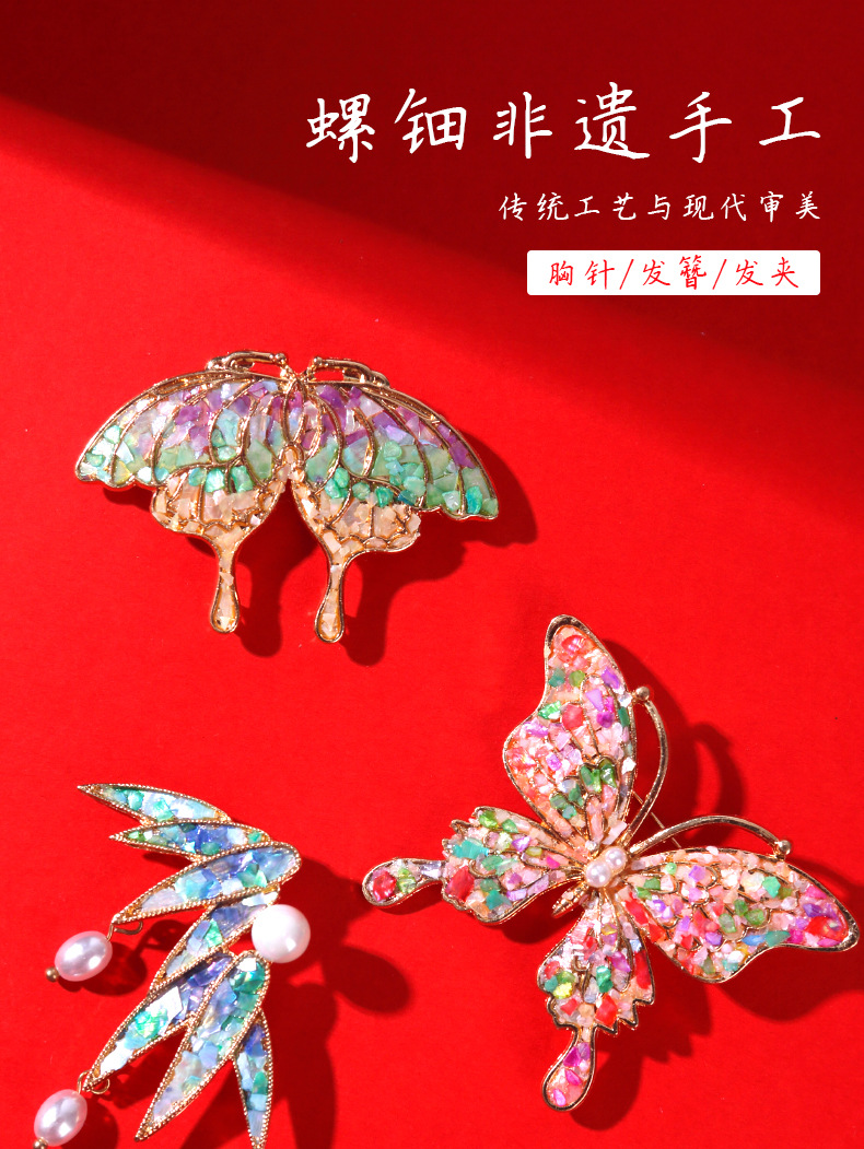 Набор материалов из перламутра DIY, нематериальное культурное наследие ручная брошка, заколка, палочка для волос, фрагменты бабочки, активность к празднику середины осени