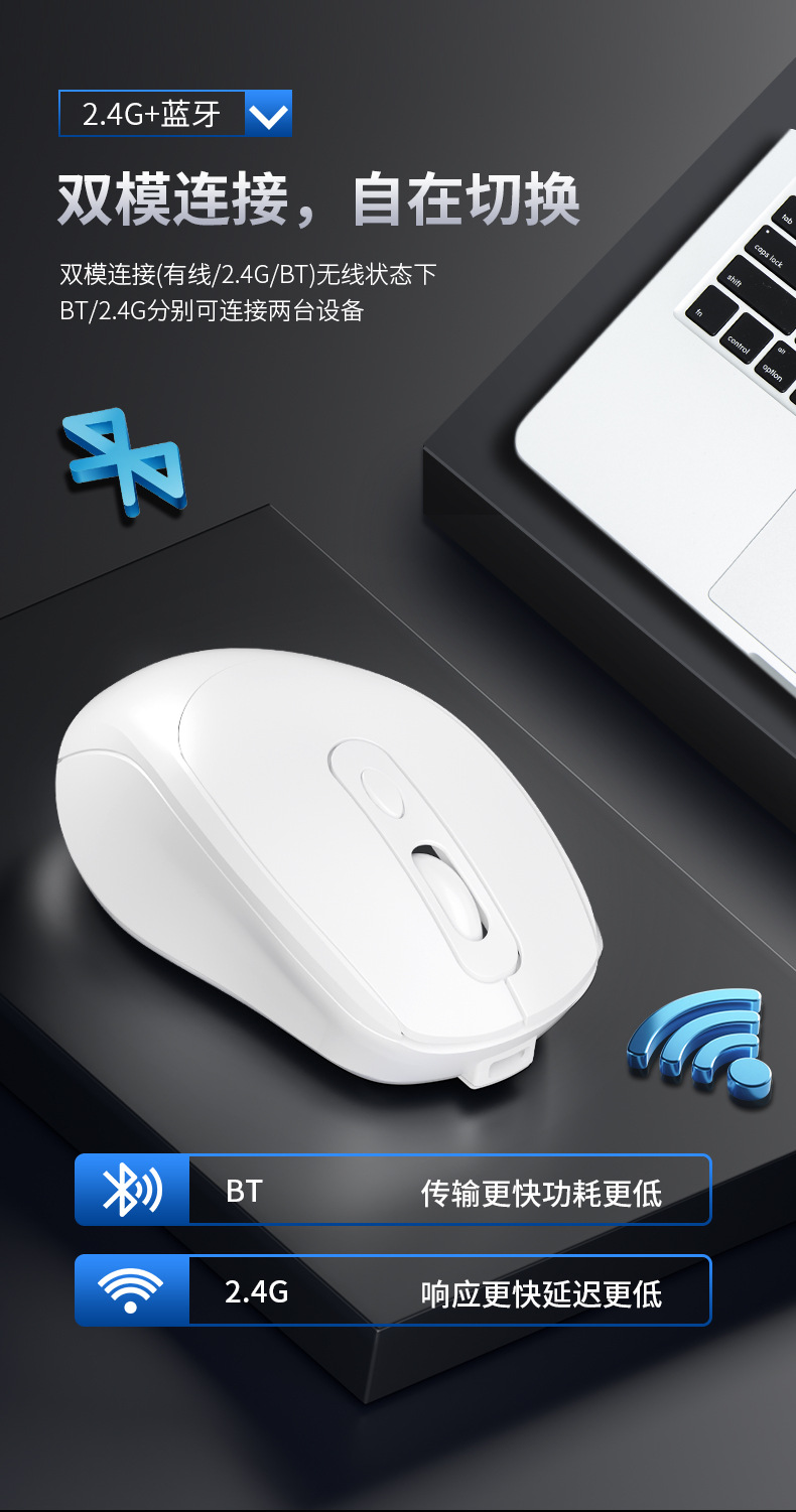 Цвет [dual mode cool black] bluetooth + 2.4g wireless version★Charging mute★Universal desktop notebook [dual mode snow white] bluetooth + 2.4g wireless version★Charge