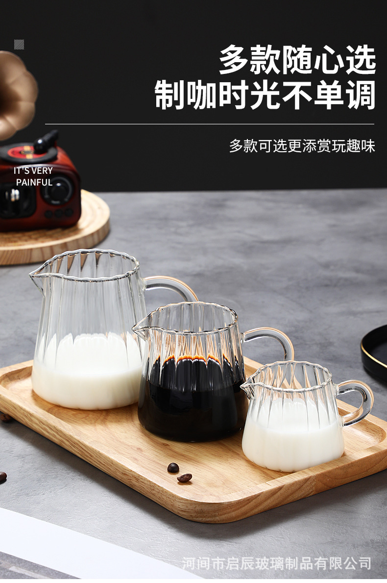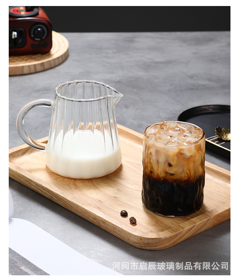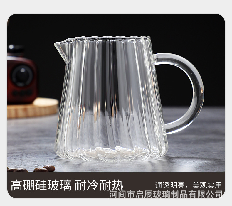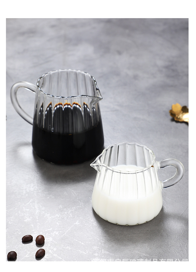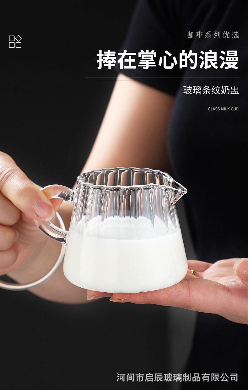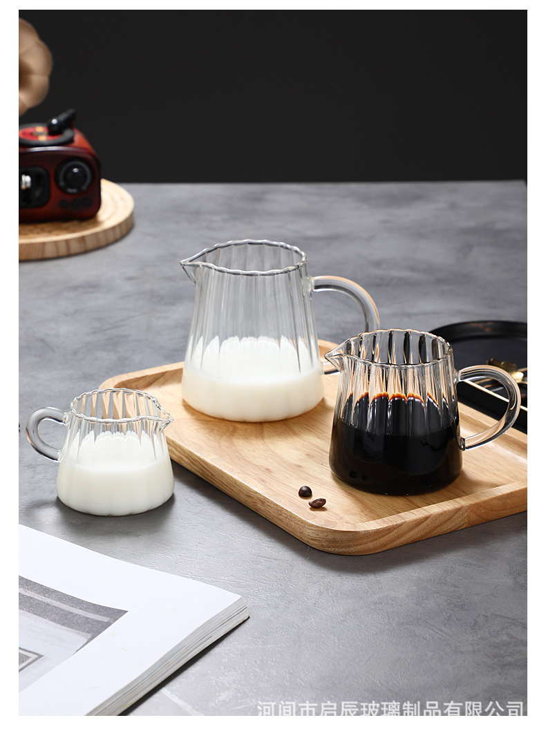 Маленький молочник из высокобorosilicate стекла с вертикальным узором, с ручкой и заостренным носиком