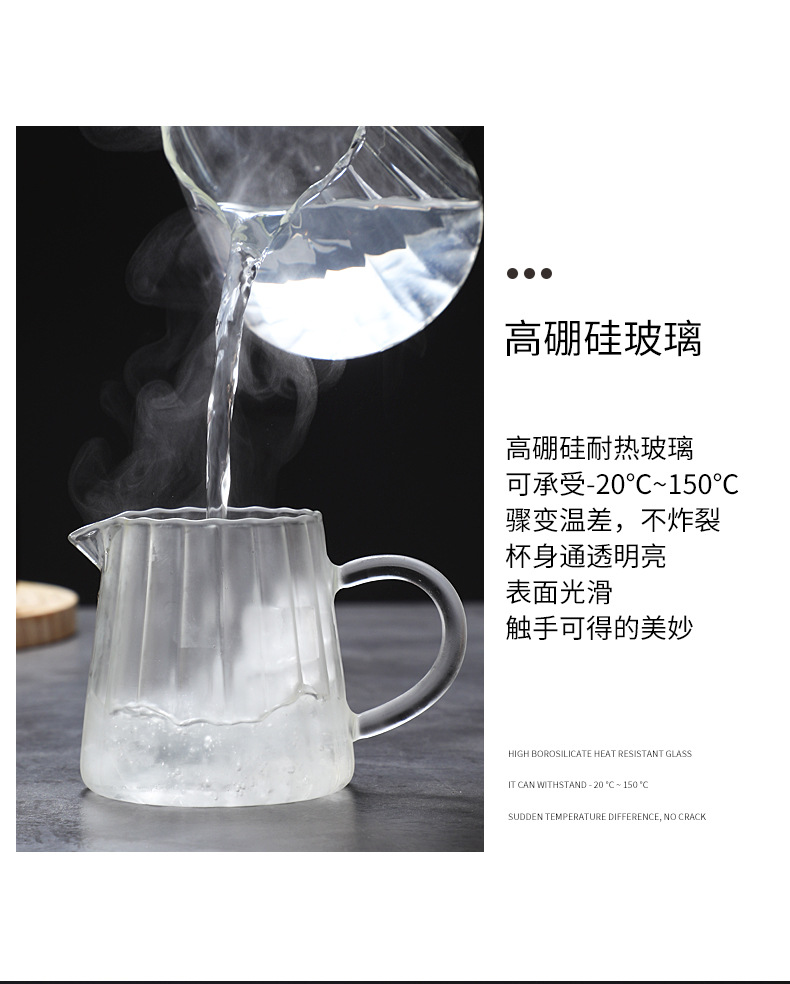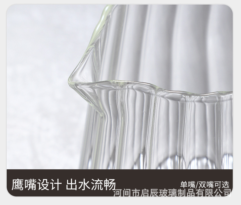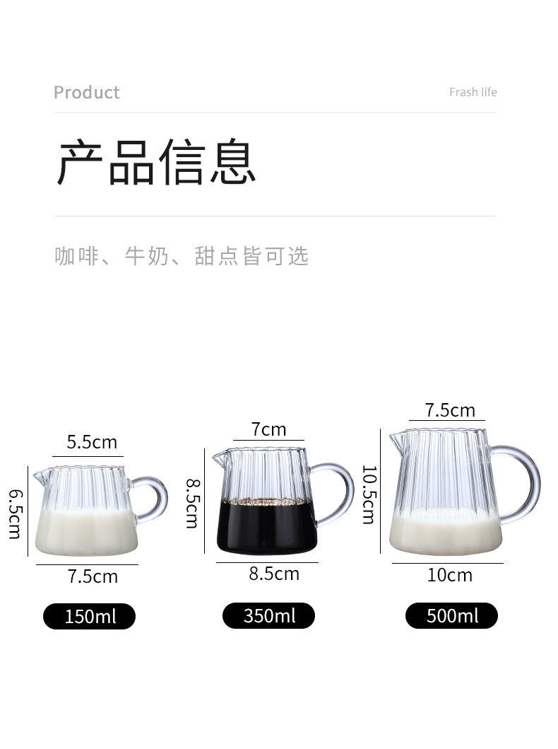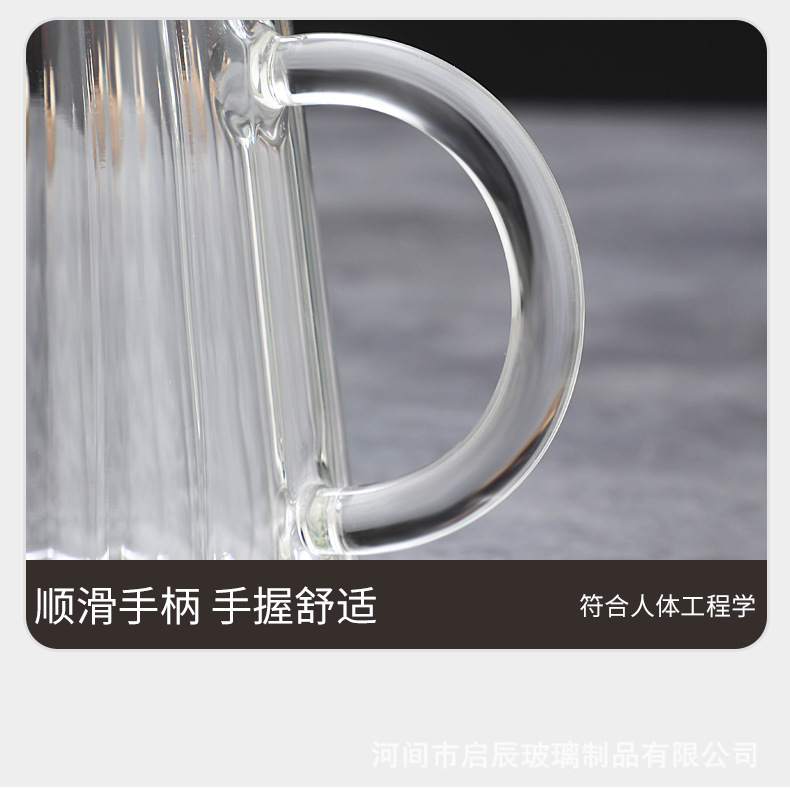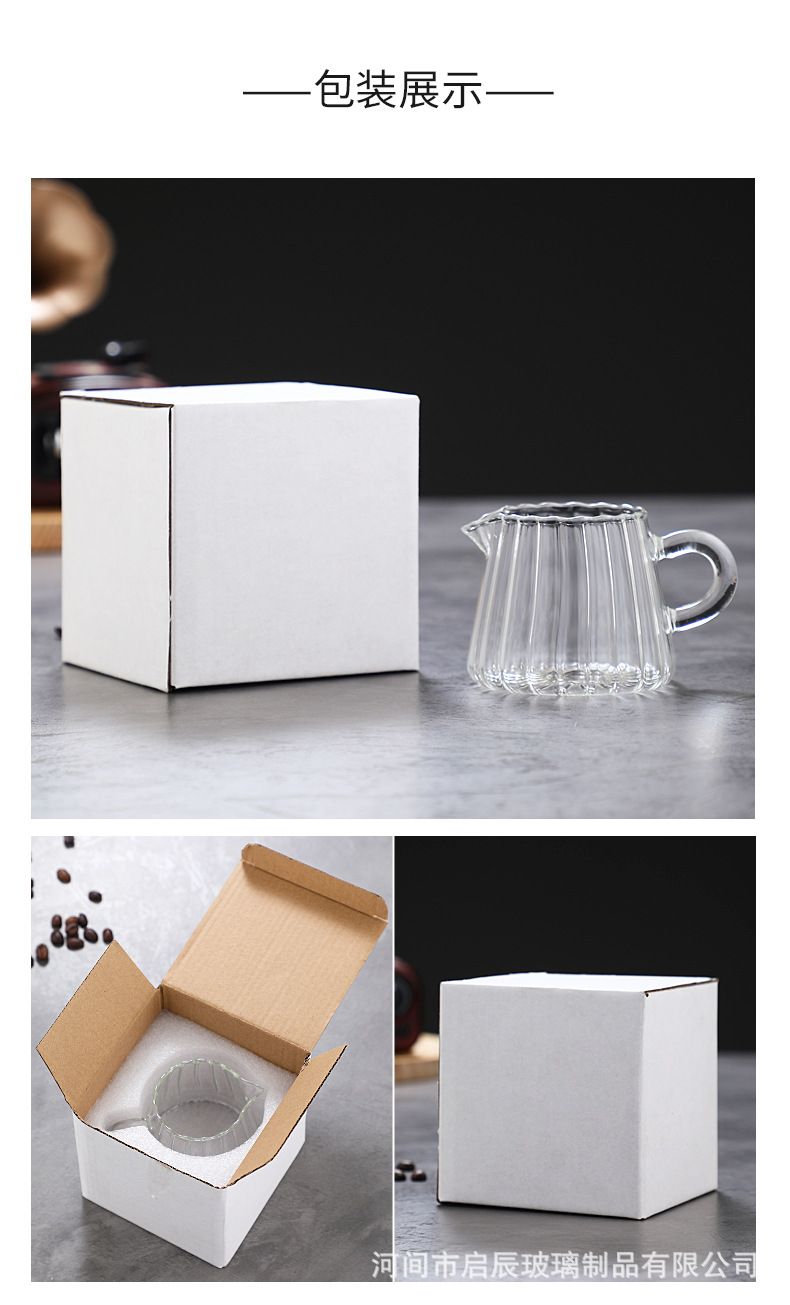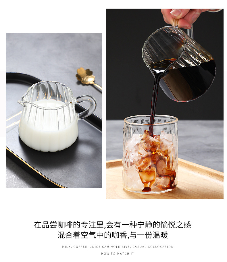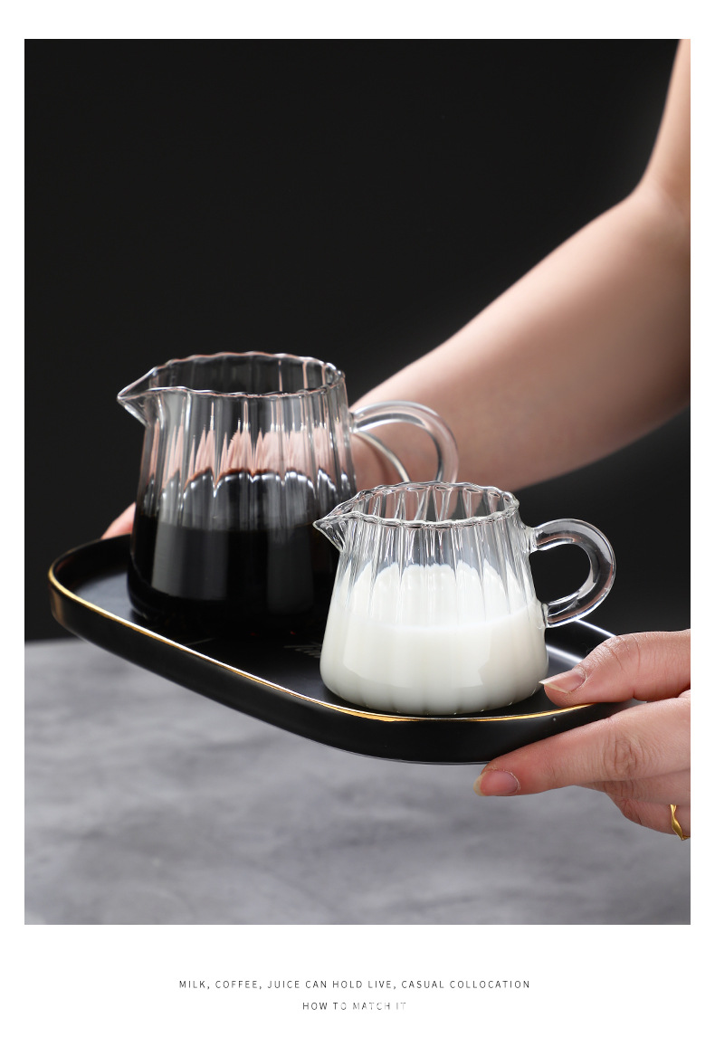 Маленький молочник из высокобorosilicate стекла с вертикальным узором, с ручкой и заостренным носиком