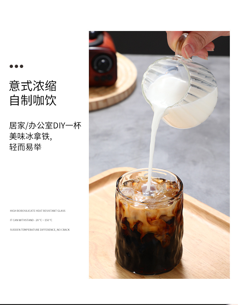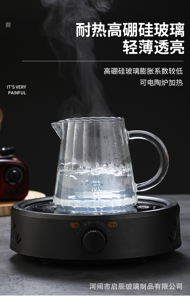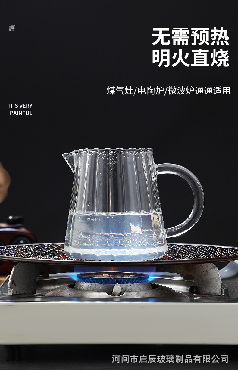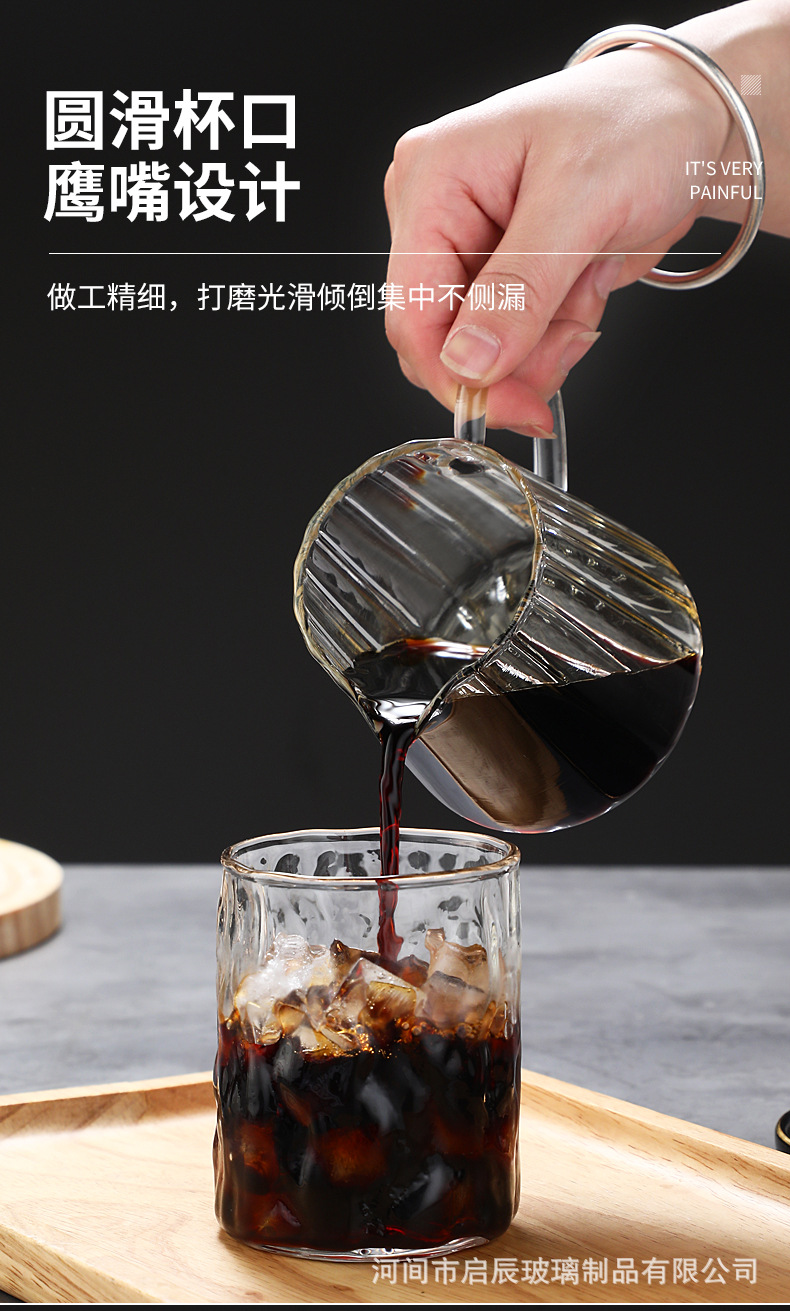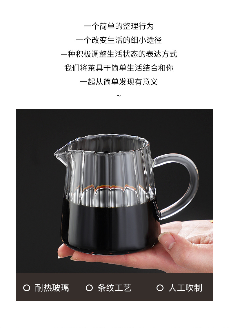 Маленький молочник из высокобorosilicate стекла с вертикальным узором, с ручкой и заостренным носиком