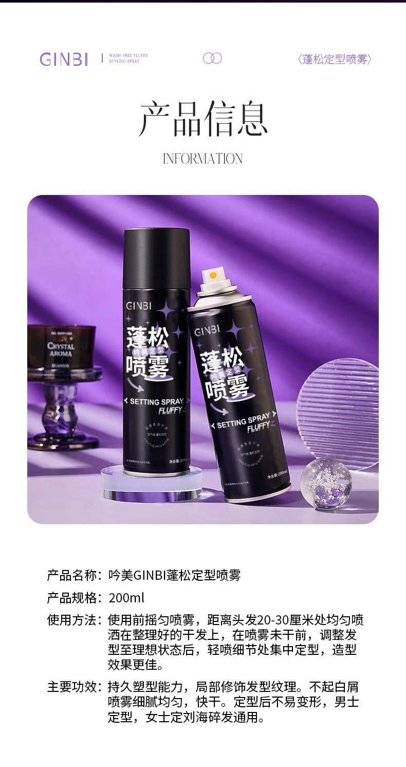 Yinmei Пухлый Стайлинг Спрей 200мл Долговременное Увлажнение Высокий Объем Освежающий Долговременный Ленивая Укладка Оптовая