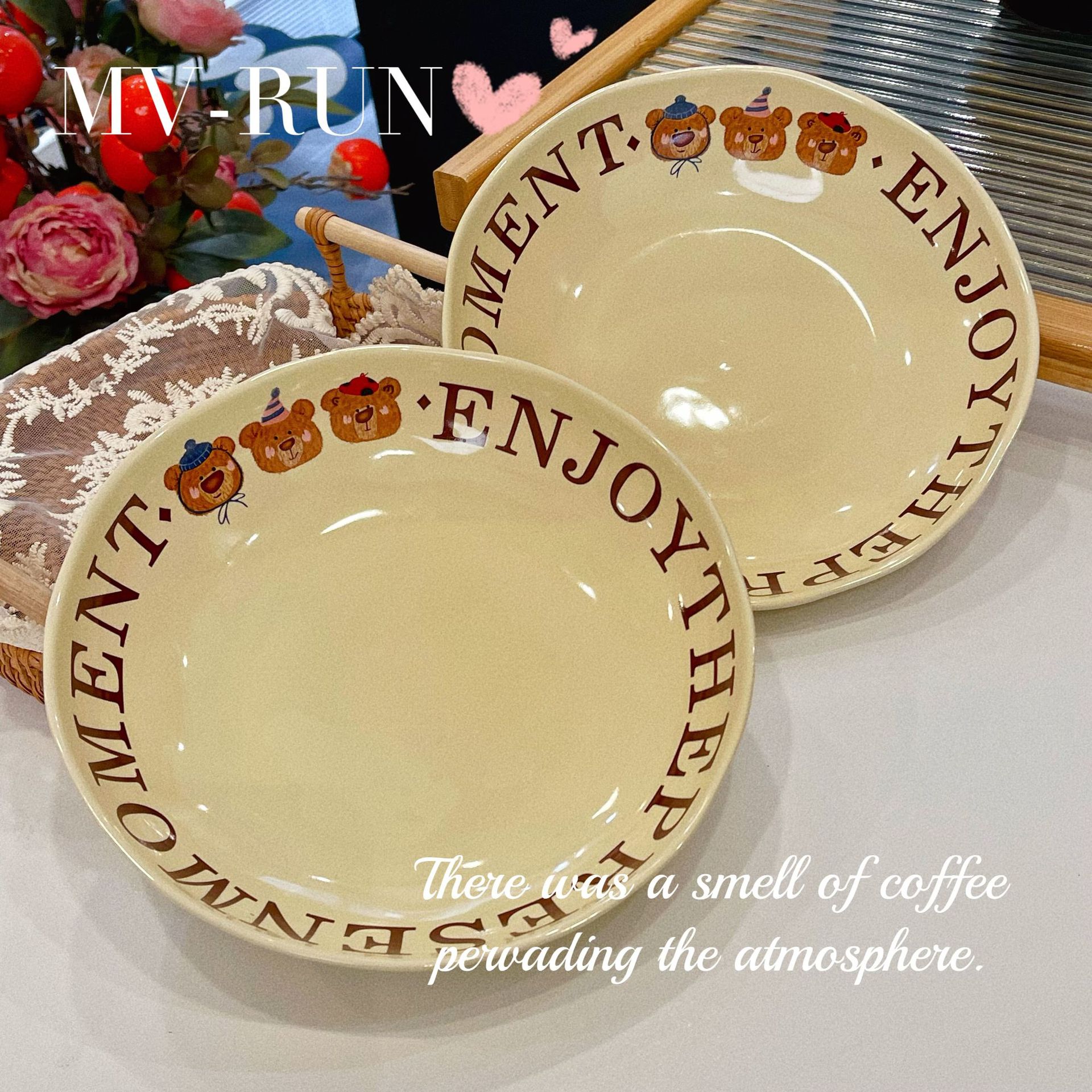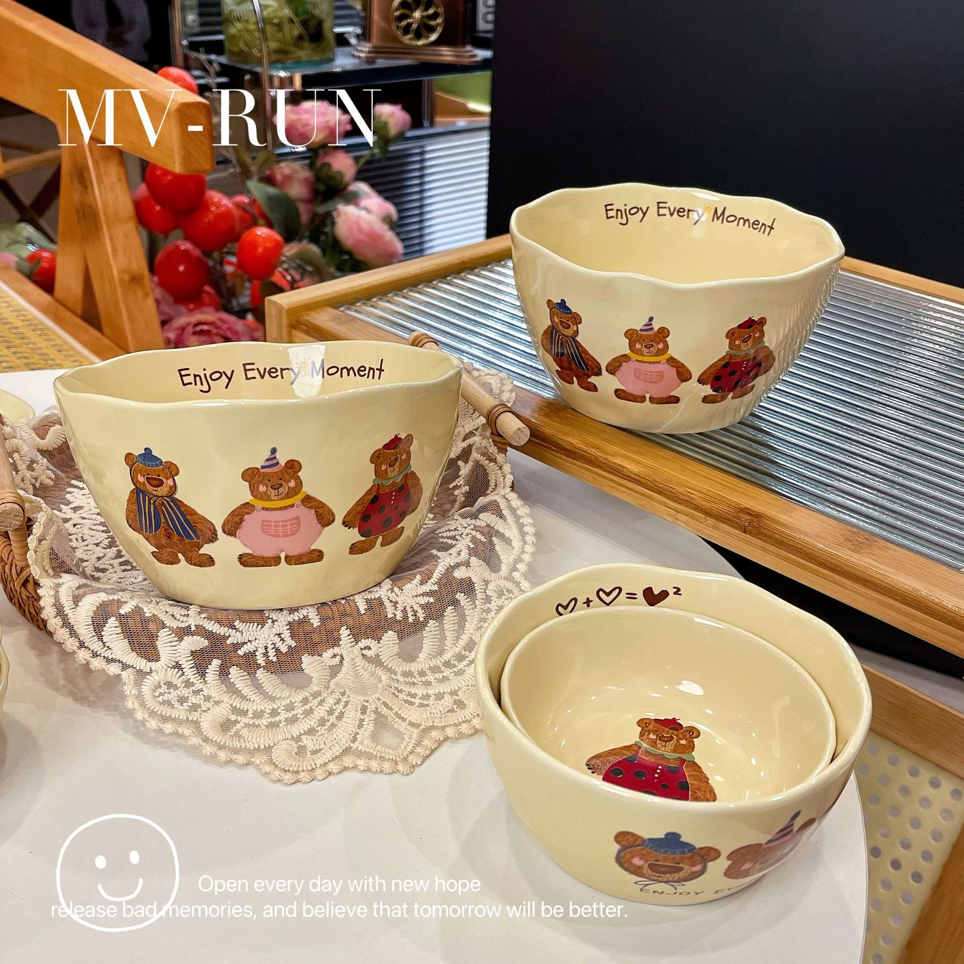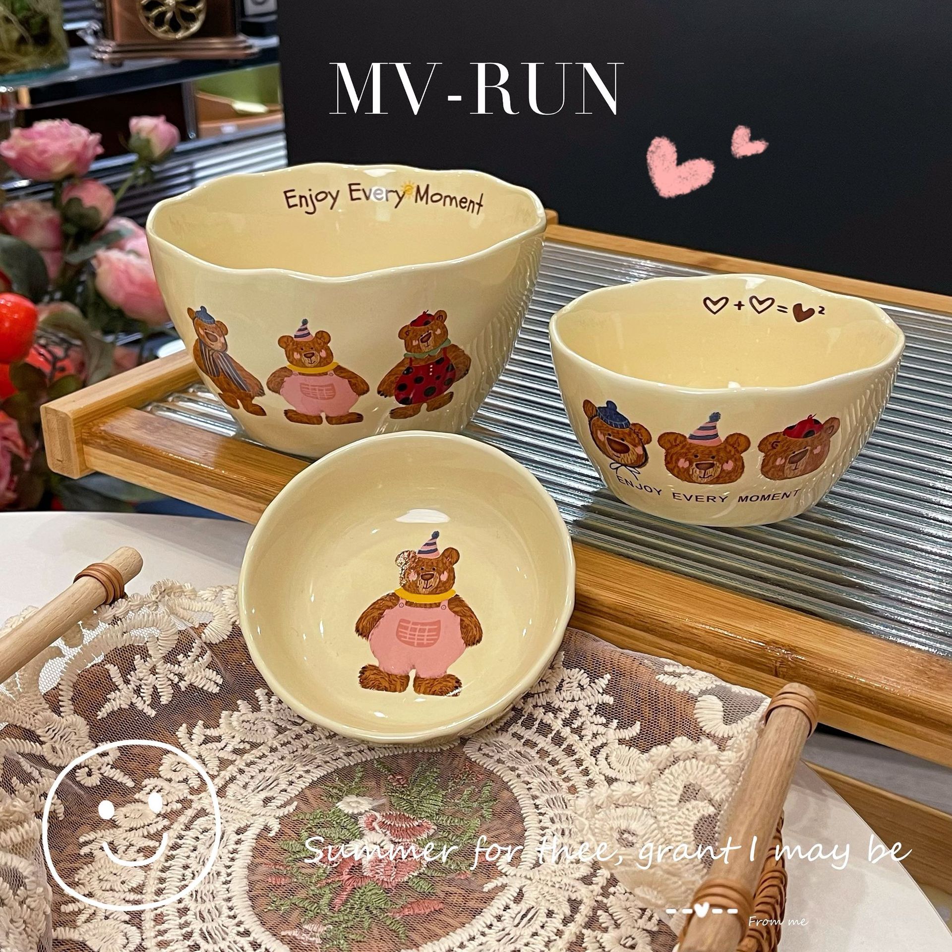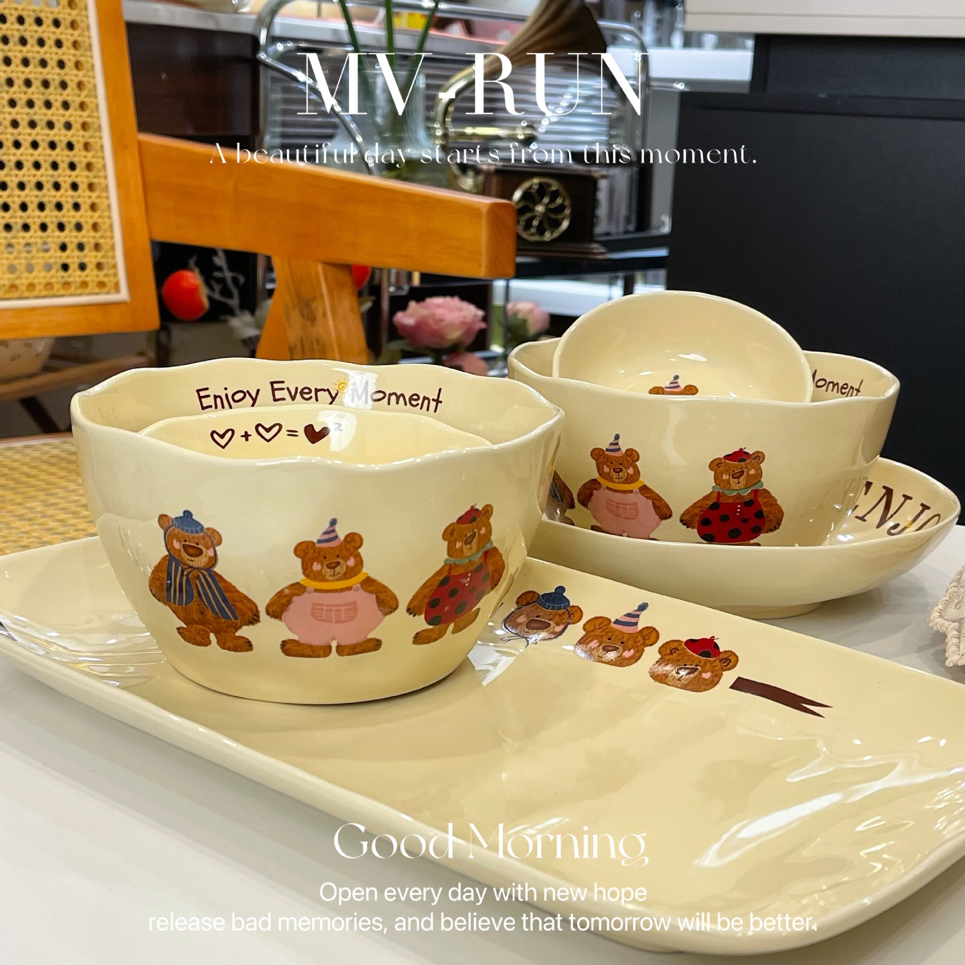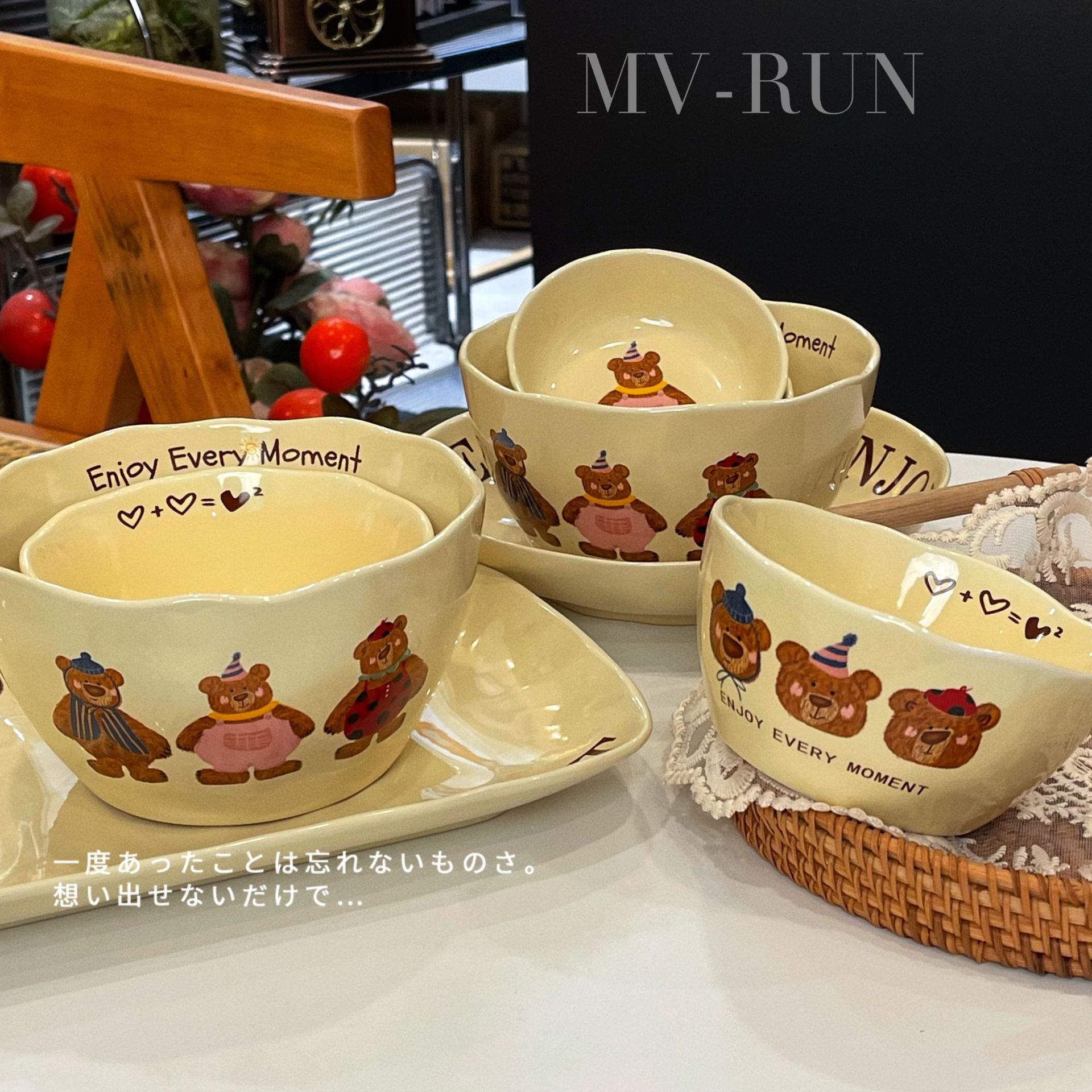 Современная керамическая посуда с тремя медведями, набор рисовых тарелок