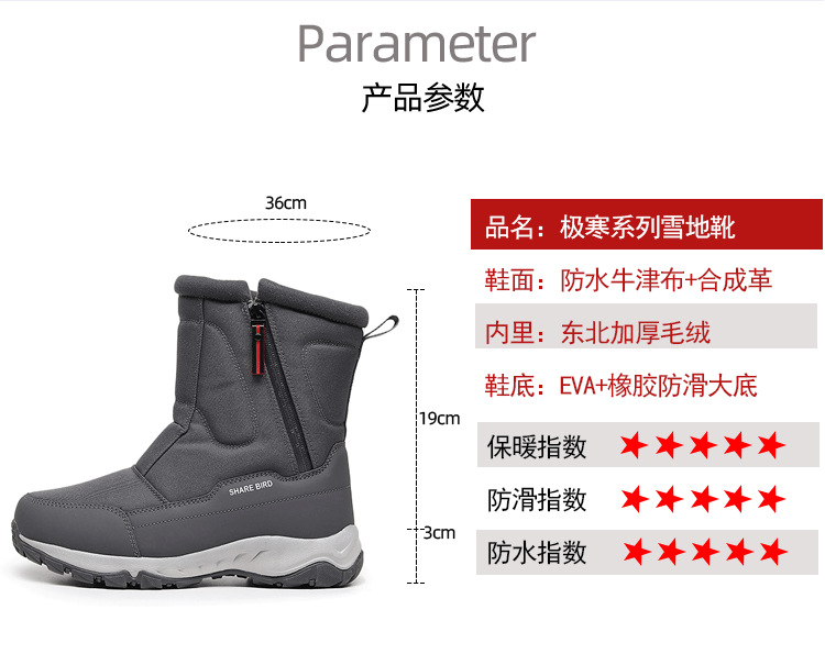 Зимние туристические уличные снежные ботинки для мужчин и женщин, утолщенные, большие хлопковые ботинки для северо-востока, противоскользящие, теплые, с утеплителем